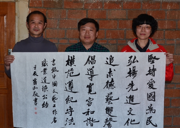 书法家卞云和现场书写文艺界核心价值观