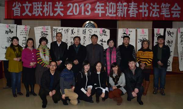 2013年1月29日上午,由省文联办公室、机关党委、省书协和省书法活动中心联合主办的“省文联机关2013迎新春书法笔会”在省文联七楼会议室举行。省书协张戈、胡志平、王斌、王凯霞、闫恩双等驻会书法家挥毫泼墨,省剧协驻会副主席、秘书长欧阳秀芝奉献了自己的书画佳作,为省文联机关的同志们送来新春的祝福。笔会由省文联党组成员、副主席计世伟主持。省文联机关全体同志踊跃参加。