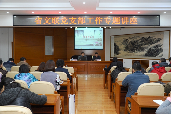 为进一步加强省文联基层党组织建设,提高基层党组织工作程序化和规范化程度,提升党支部书记和全体党员干部的党建工作水平,按照省直工委的要求和文联党组《党建全面提升工程2017年实施方案》《落实全面从严治党责任清单》关于进一步提升党组织生活质量、提升机关党建整体效能的要求,11月10日,省文联邀请省直机关工委委员、组织部长刘秋波做客文联大讲堂,就如何开展党支部工作,为文联党支部书记、党员干部,直属事业单位全体党员做专题讲座。省文联党组成员、副主席计世伟主持讲座。