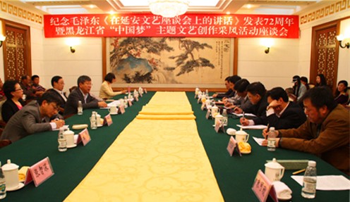 1942年5月23日,毛泽东同志在延安文艺座谈闭幕会上作重要讲话,此次讲话连同他在当月2日会议上发表的讲话,共同构成了关于文艺问题的重要论著《在延安文艺座谈会上的讲话》。为了重温《讲话》重要精神,总结我省宣传文化系统近期开展的“中国梦”主题文艺创作采风活动的进展情况,2014年5月23日,纪念毛泽东同志《在延安文艺座谈会上的讲话》发表72周年暨黑龙江省“中国梦”主题文艺创作采风活动座谈会在哈尔滨召开。