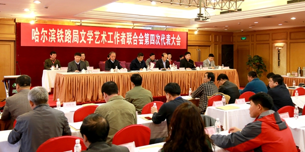 黑龙江省文联主席傅道彬在致词中指出:哈尔滨铁路局自第三次文代会以来,全局广大文艺工作者以服务经济社会为己任,围绕大型节庆、重大主题举办了系列展览、文艺演出、文艺创作和理论研究活动,为助推全局、全省的社会发展提供了强大的精神支持和文化动力,创造了良好的文化氛围。哈局文联紧紧围绕中心,在服务铁路、服务龙江、开展文学艺术创作上做出了重要贡献。广大文艺工作者坚持人民至上的创作导向,取得了丰硕的创作成果。一大批优秀作品获得了全国和全省的众多奖项。探索总结的“以联办会、以友聚会、以情兴会”的文联工作方法,在全国文联系统产生了良好影响,受到中国文联的表彰和肯定。文艺志愿者服务活动在全省创出了品牌,被黑龙江省授予“群星奖”。这些不仅为企业文化建设发挥了重要作用,同时也为推动龙江文艺大发展大繁荣做出了重要贡献。