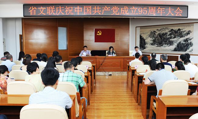6月29日下午,省文联隆重召开庆祝大会。省委宣传部副部长、省文联党组书记田文媛、省文联党组成员、副主席计世伟、张戈出席会议。省文联全体党员和入党积极分子参加会议。会议由计世伟主持。