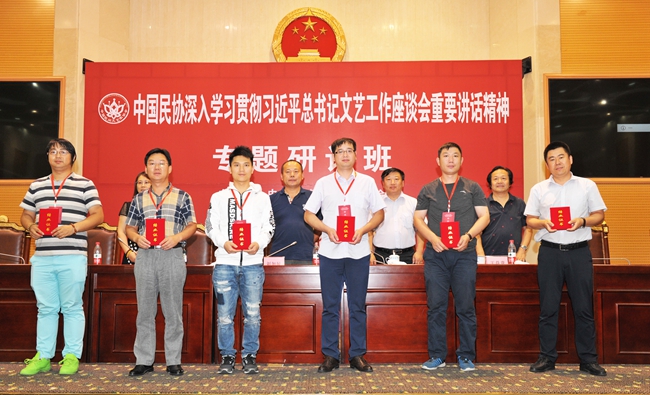 傅道彬在致辞中说,学深学透习总书记的重要讲话,有利于深刻认识自己在文化强国建设和中华民族实现伟大复兴“中国梦”进程中的方位和定位,有利于牢牢把握自己的中心任务,有利于遵循和坚持正确的创作导向,结合艺术实践,让爱国、为民、崇德、尚艺的文艺界核心价值观在我省的民间艺术界落地生根。