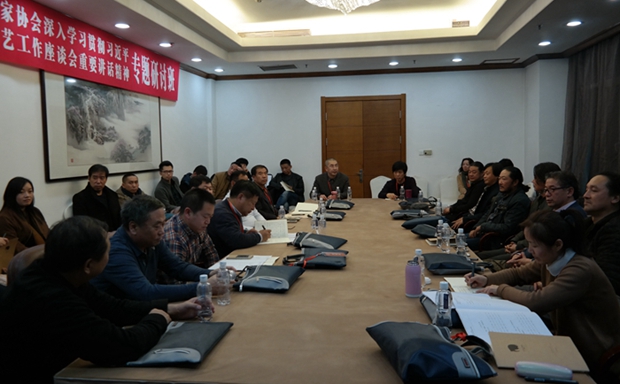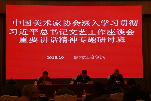2016年10月26日,中国美术家协会深入学习贯彻习近平总书记文艺工作座谈会重要讲话精神专题研讨班在黑龙江哈尔滨开班。此期研讨班是中国美术家协会继广西、山东、浙江、上海、江苏等省市之后举办的第十五期专题研讨班。中国文联美术艺术中心主任丁杰,黑龙江省文联党组成员、副主席,黑龙江省书协主席张戈,黑龙江省文联副主席、黑龙江省美协主席吴团良,黑龙江省美协常务副主席、秘书长李振宇等出席了开班仪式。开班仪式由黑龙江省文联副主席、黑龙江省美协主席吴团良主持。黑龙江省美协主席团成员、黑龙江省中国美协会员、文艺创作骨干等160余人参加了此次专题研讨班。