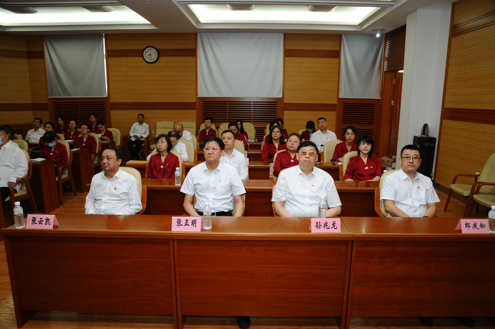 7月1日,省文联组织全体干部职工集中收看庆祝中国共产党成立100周年大会直播,共同祝福中国共产党百年华诞。8时整,党组书记张云凯、主席韩会峰、党组成员、副主席张正明、党组成员、副主席黄锦秋和机关干部统一服装、佩戴党徽端坐在会议室,共同见证这一历史性时刻。
