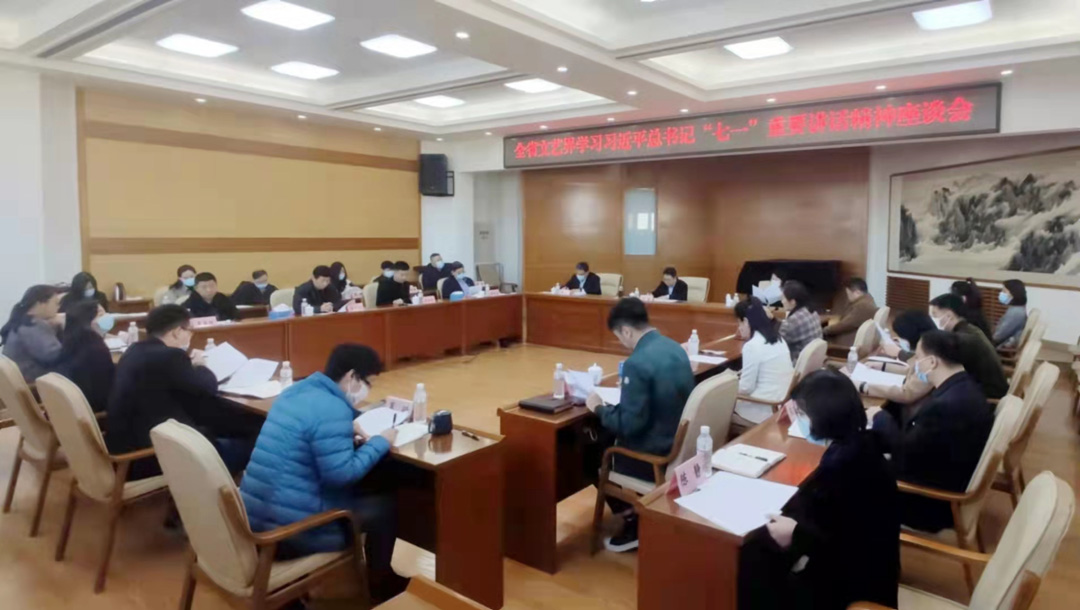 王宏宇、刘和刚、于冠超、李文宝、马佳、夏富祥、张喆等省级文艺家协会主席团成员、知名艺术家及新文艺群体代表围绕学习贯彻习近平总书记“七一”重要讲话精神,结合各自领域的理论和实践,从发挥文艺领军人物引领带动作用、立足本领域文艺工作科学发展、推进党史学习教育持续深入开展等方面进行了分享和交流。大家一致表示,要继续深入学习习近平总书记讲话的丰富内涵和精神实质,深刻领会中国共产党百年奋斗的光辉历程和伟大成就,增强文艺工作者的使命与担当,用明德引领风尚,以精品奉献人民,创作出更多具有时代性、人民性的精品力作,发挥文艺铸魂培根作用,增强全民文化自信。
