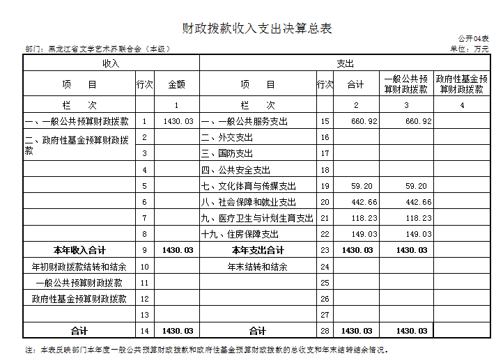注:本表反映部门本年度的总收支和年末结转结余情况。 | |||||||||