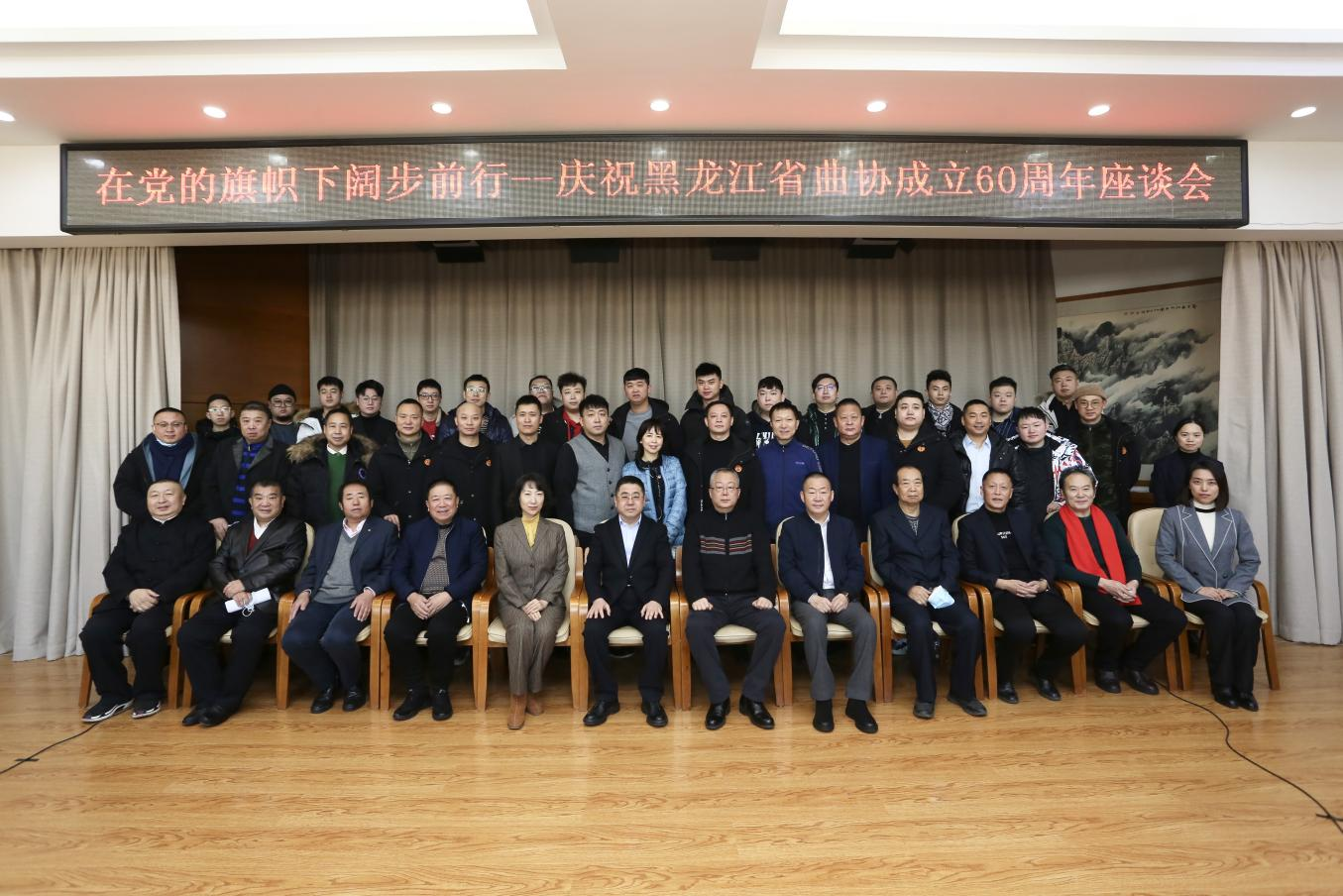 12月29日上午,以“在党的旗帜下阔步前行”为主题的庆祝黑龙江省曲艺家协会成立60周年座谈会在哈尔滨市举行。黑龙江省文联党组书记马新,省文联主席韩会峰,省文联副主席、党组成员黄锦秋,省文联副主席、省曲协主席、省演艺集团总经理刘彤及曲艺界各方面代表100余人线上线下共同出席座谈会。