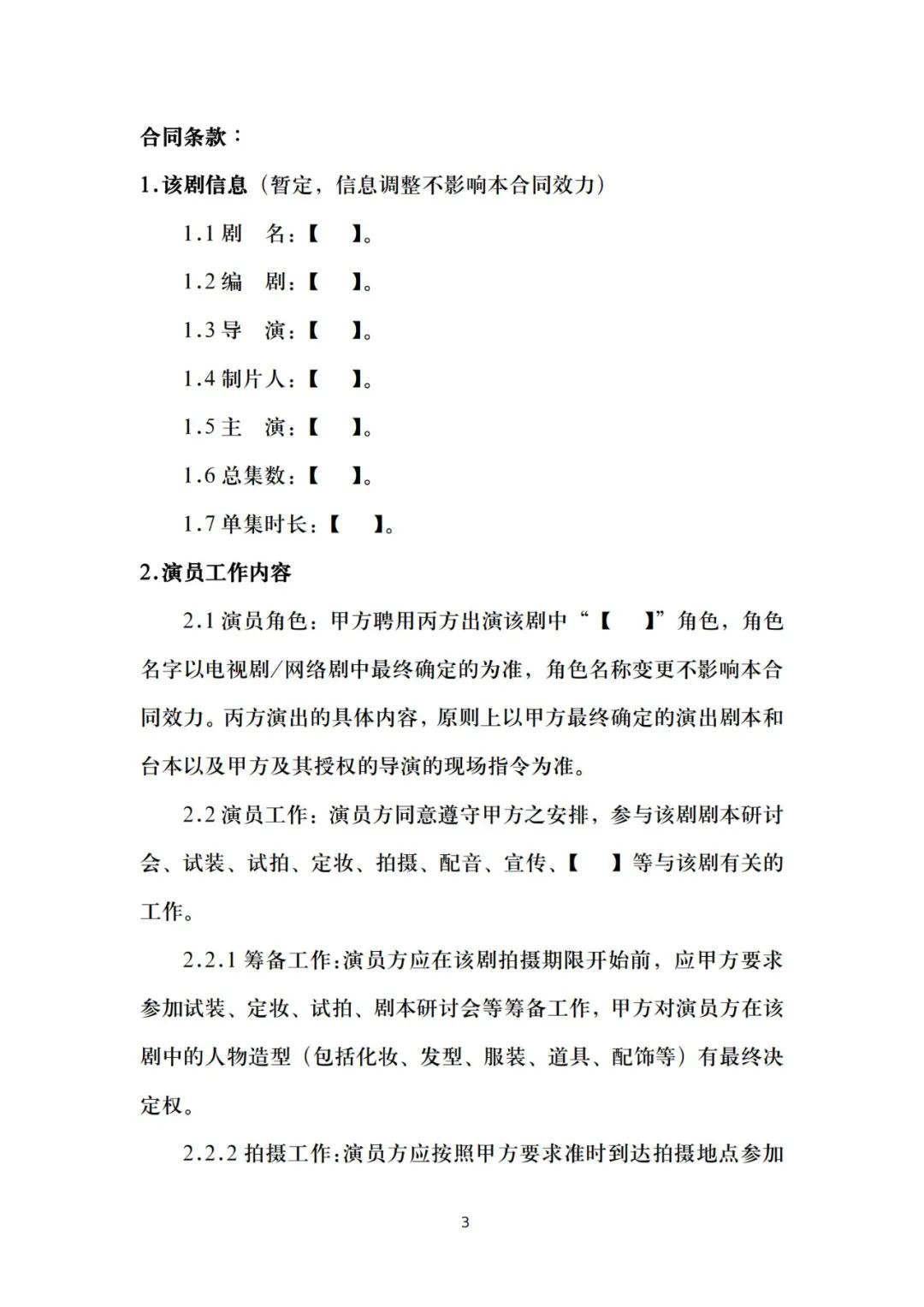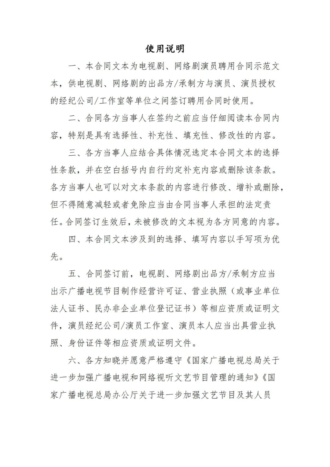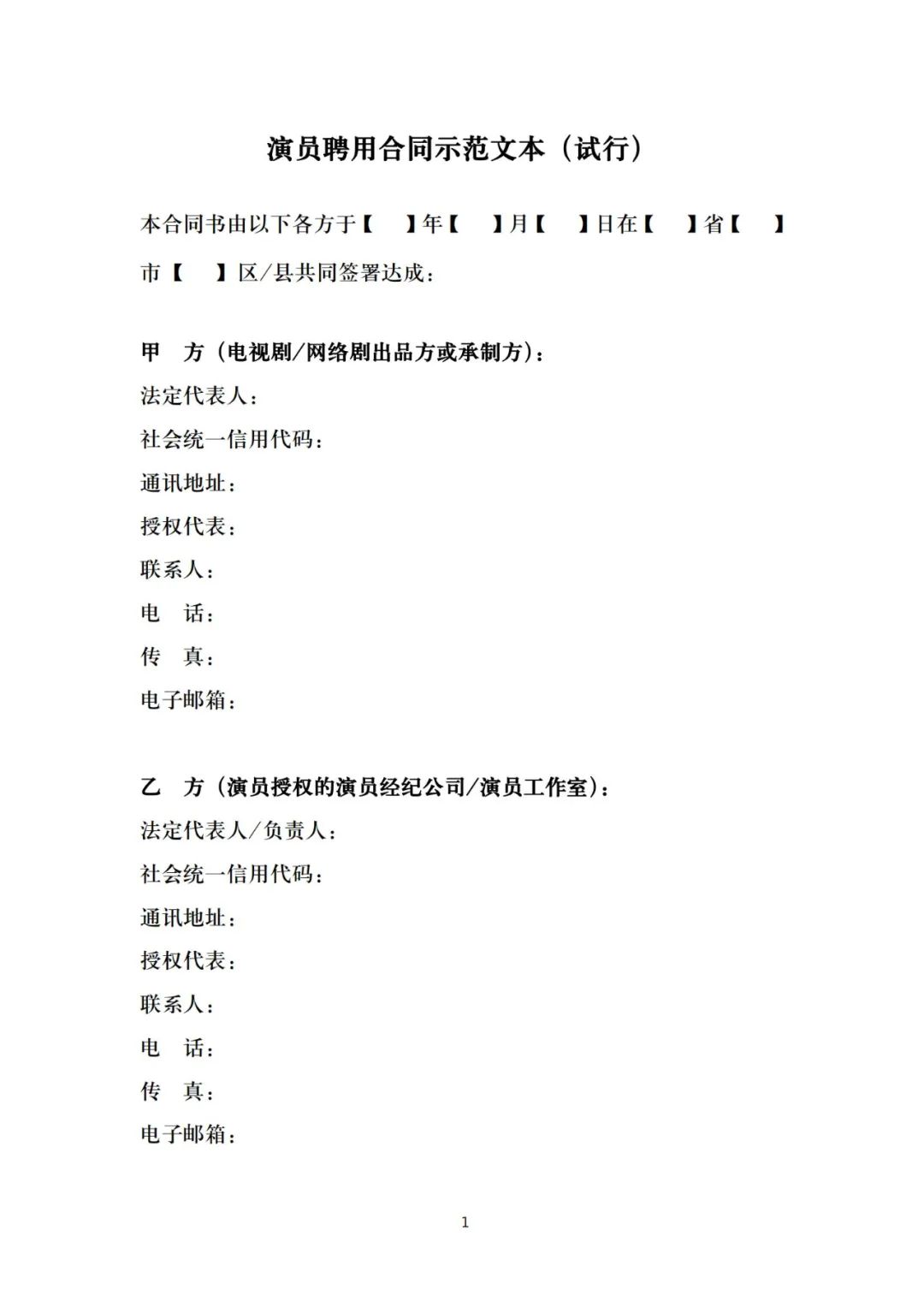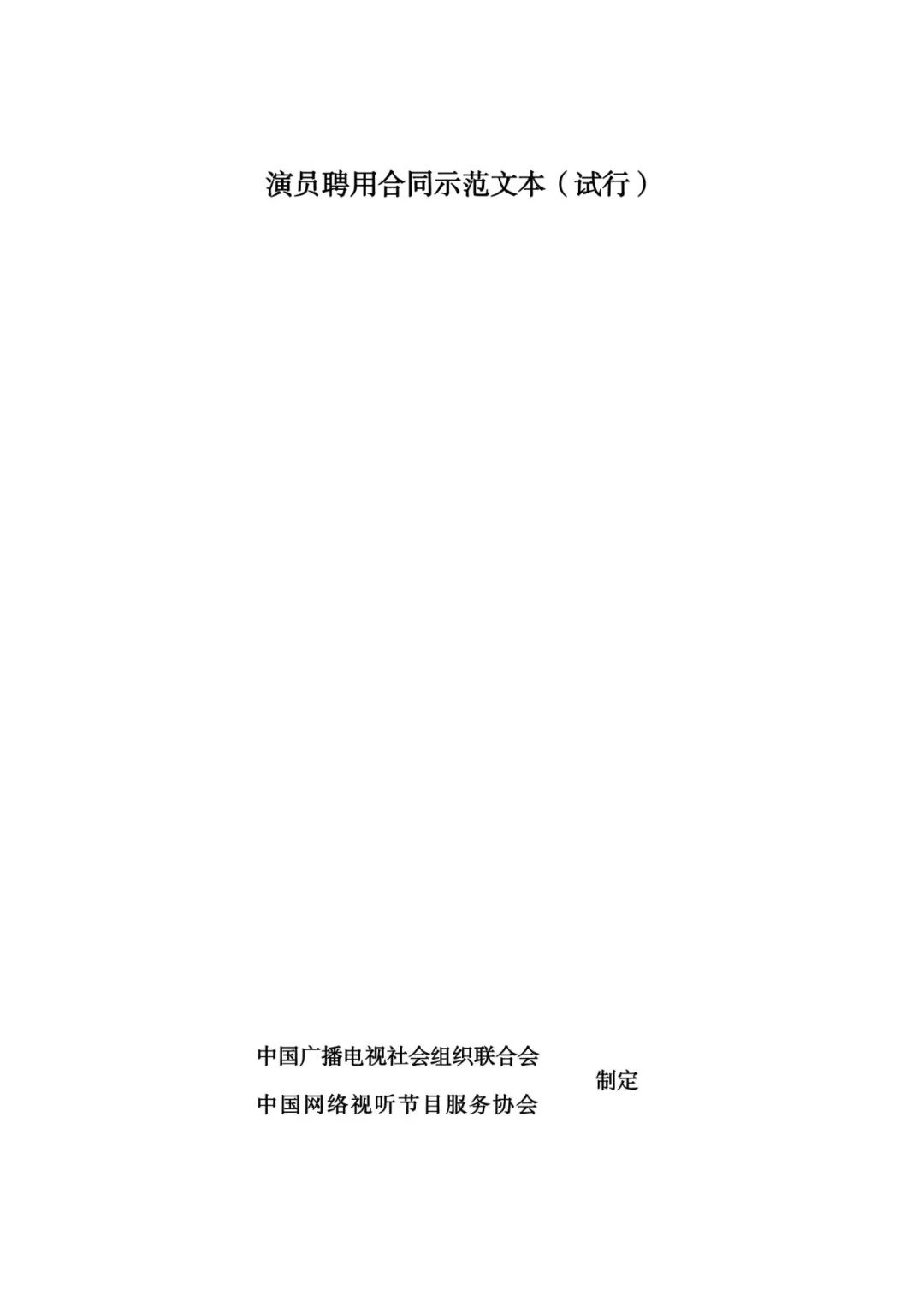 近日,经国家广播电视总局批准,中国广播电视社会组织联合会与中国网络视听节目服务协会共同制定的《演员聘用合同示范文本(试行)》正式对外发布。我们将合同文本进行刊载,以便于文艺工作者和文艺组织参考使用。