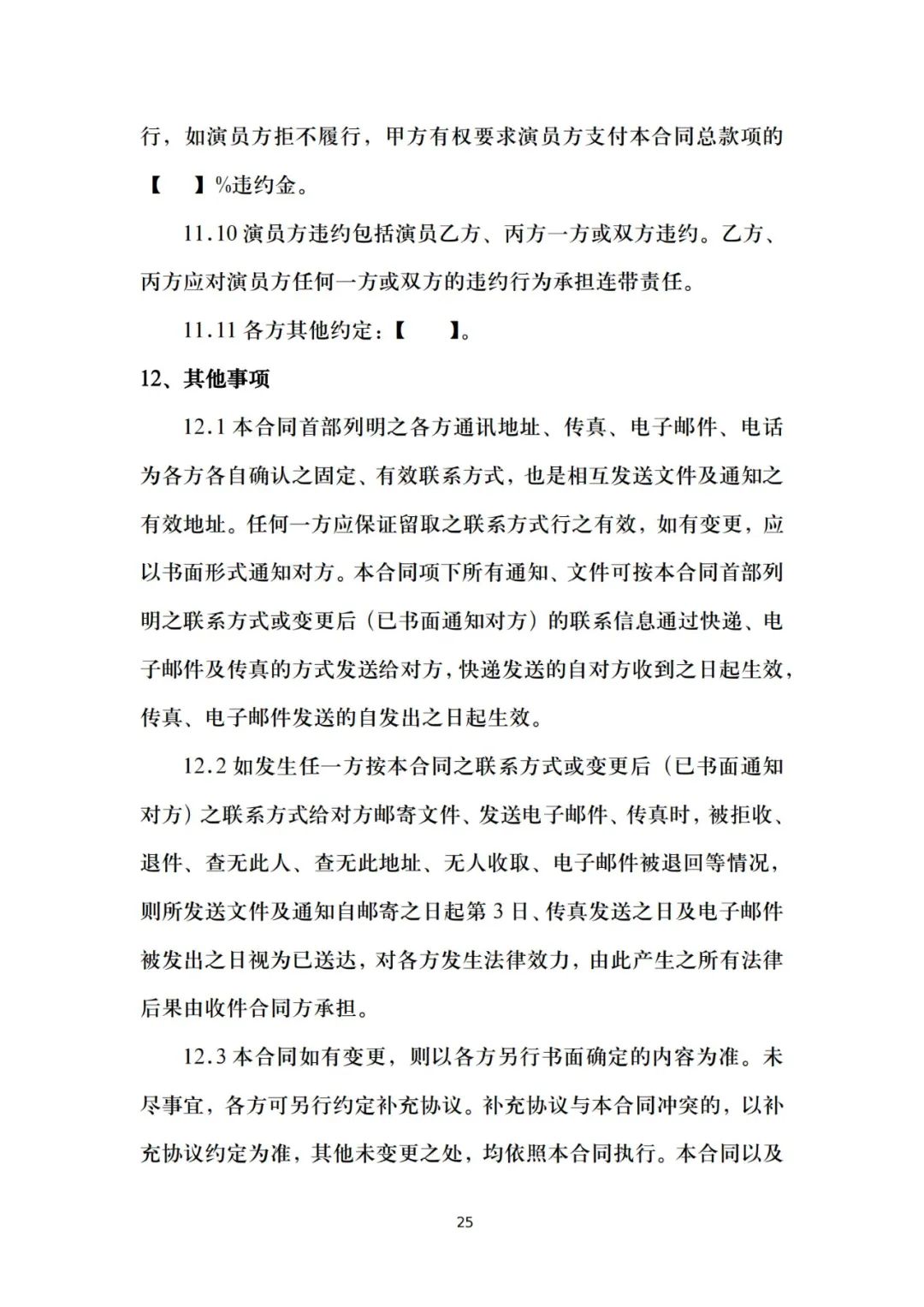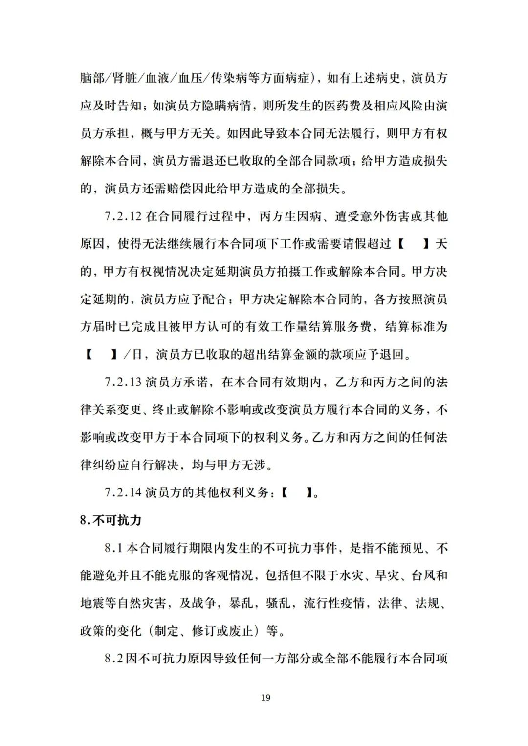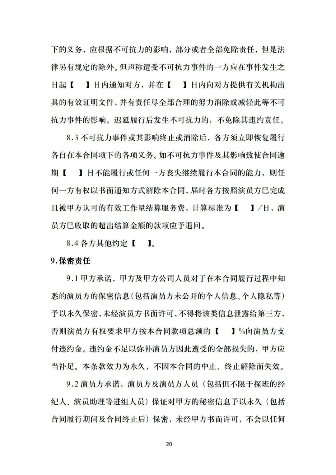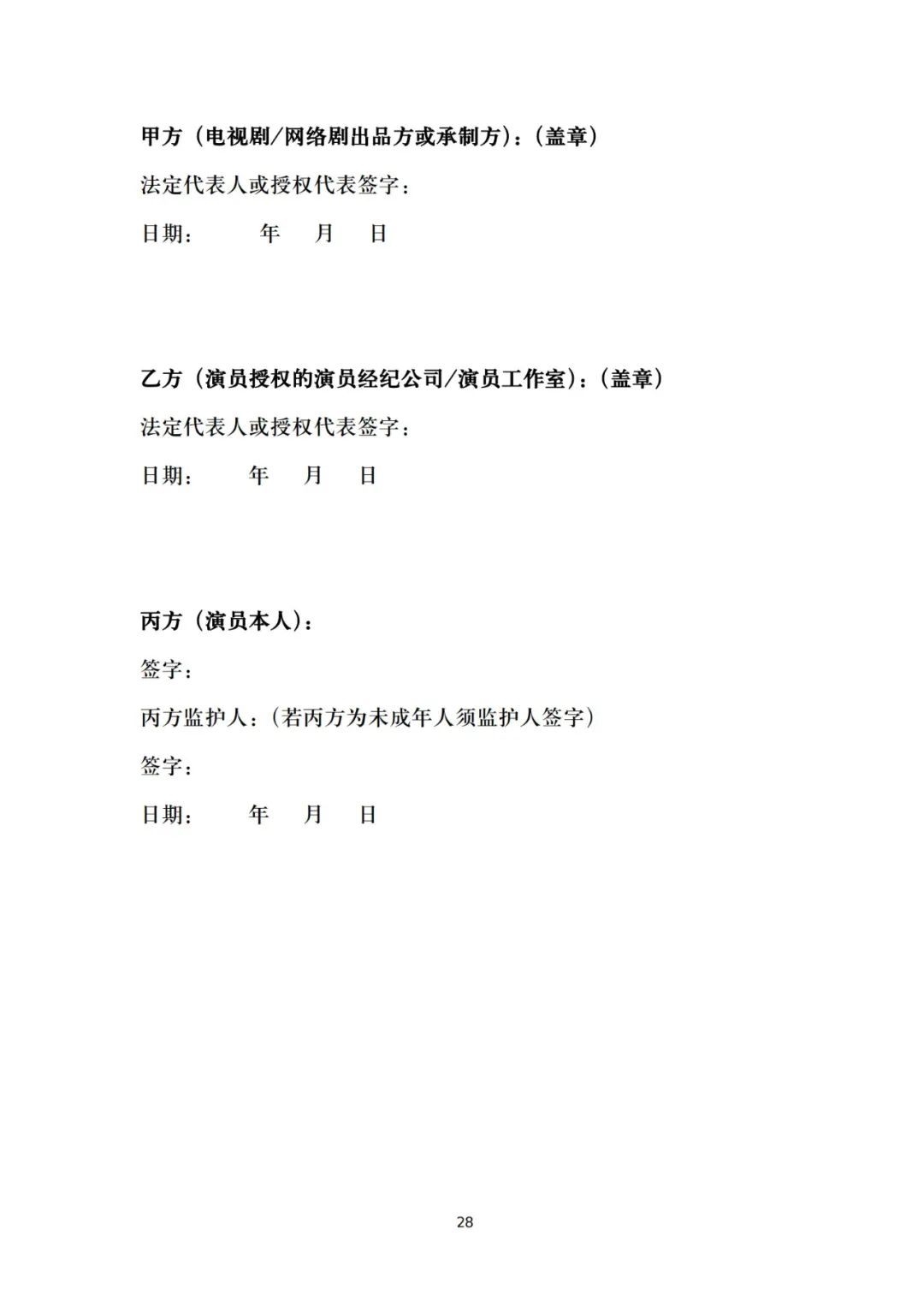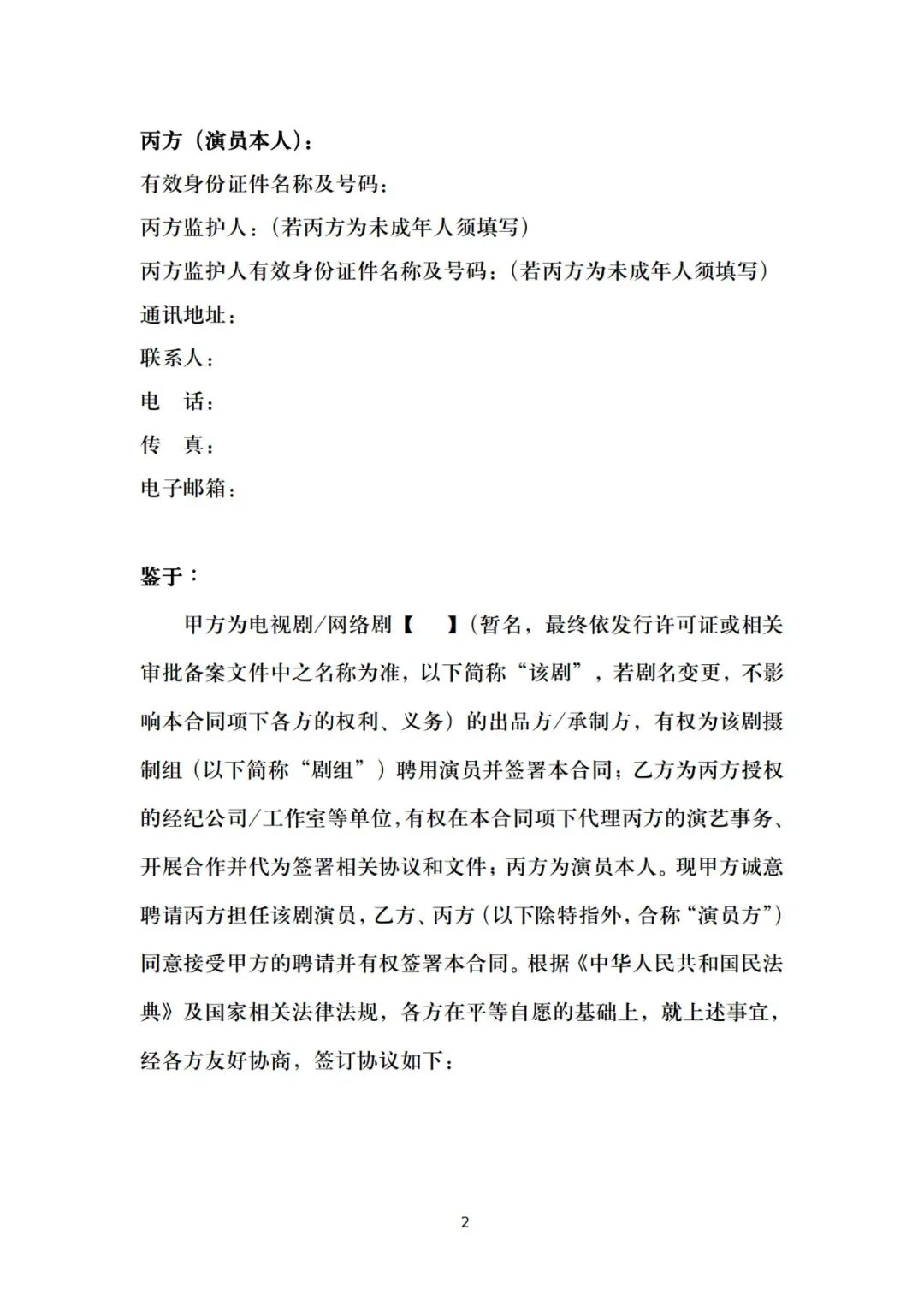 近日,经国家广播电视总局批准,中国广播电视社会组织联合会与中国网络视听节目服务协会共同制定的《演员聘用合同示范文本(试行)》正式对外发布。我们将合同文本进行刊载,以便于文艺工作者和文艺组织参考使用。