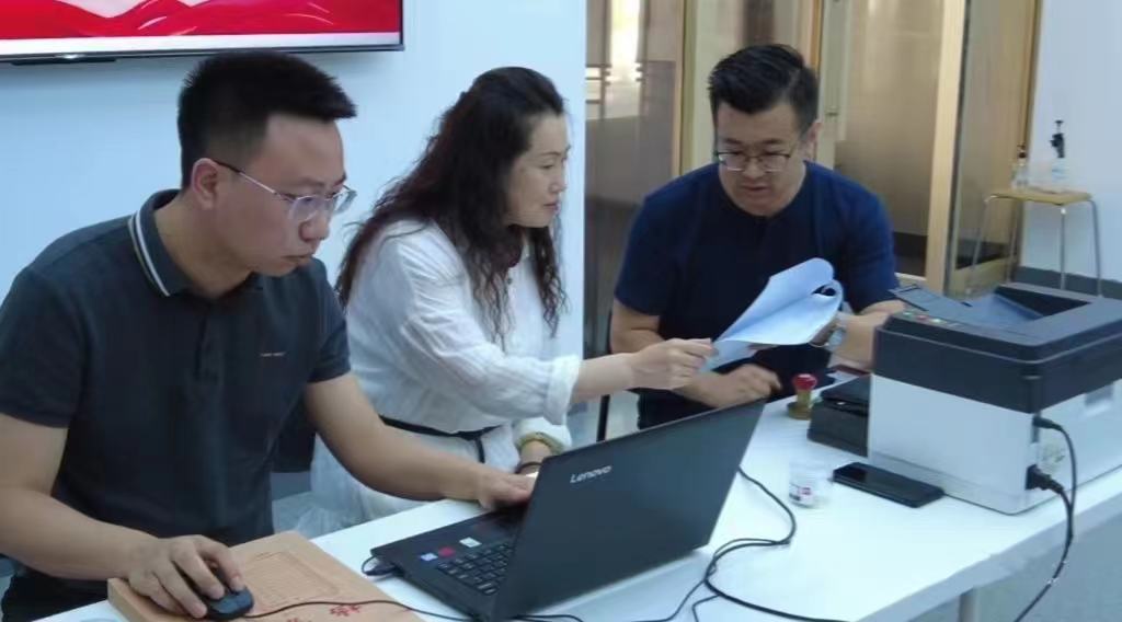 这是黑龙江省文联会同黑龙江省版权保护协会作品登记中心,为在臻艺艺术馆开办展览的文艺家现场办公,进行作品版权登记的第一宗服务。