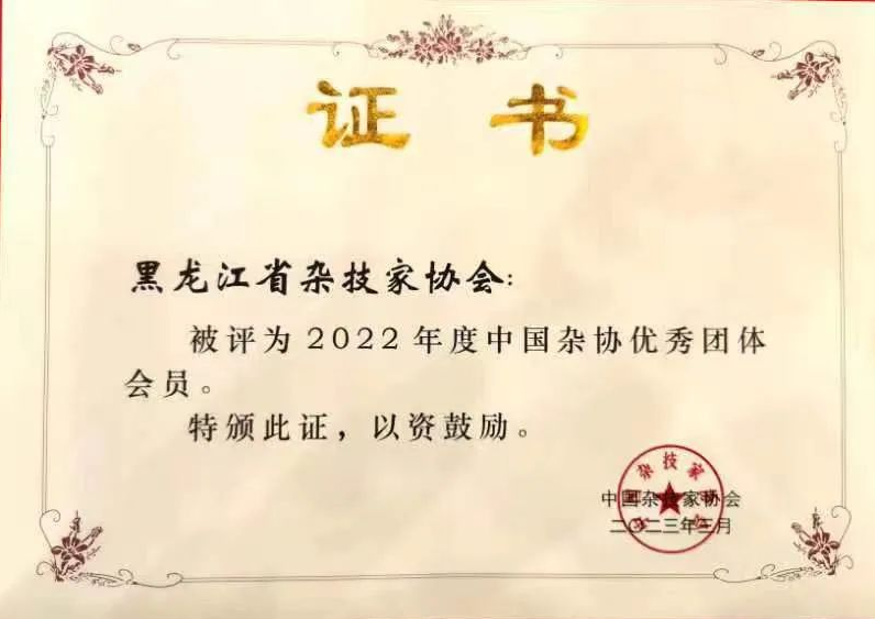 黑龙江省杂技家协会连续三年获中国杂技家协会优秀团体会员荣誉
