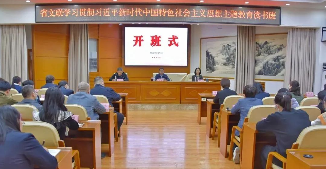 4月13日下午,省文联学习贯彻习近平新时代中国特色社会主义思想主题教育专题读书班在省文联四楼会议室开班,开展为期七天的集中学习。省文联党组书记马新在开班式上做动员讲话,省文联领导班子成员、全体机关干部参加开班式。