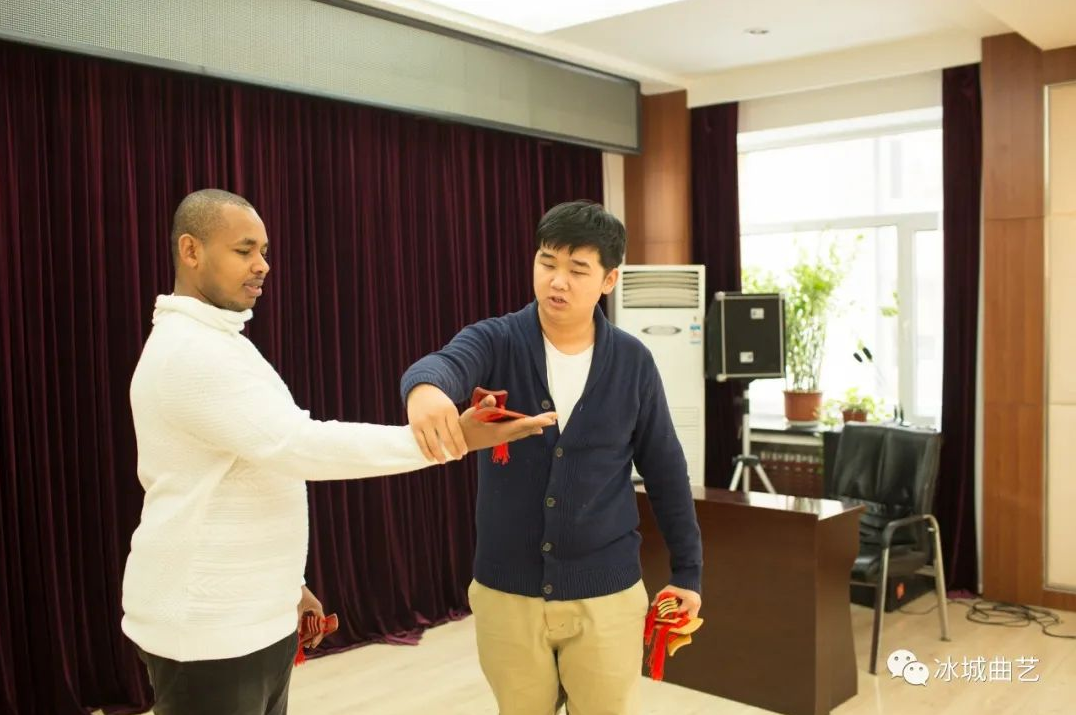 同样毕业于中国北方曲艺学校的胡绍华也是一位“九〇后”,毕业后考入黑龙江省曲艺团,他还是哈市曲协“曲艺进校园”活动的骨干教师。2018年,协会派他辅导哈尔滨工业大学的乍得留学生金帝学习中国快板,这对胡绍华来说是个挑战,他说:“中国人我还没教明白呐,让我教外国人,难呐。”可难归难,小伙子通过与金帝的接触,按照他的发音特点,因材施教,仅仅三个月的时间,金帝就参加了当年全国高校外国留学生“嘉年华”,他表演的快板是晚会上“最火”的节目。哈尔滨工业大学国际学院还专门给胡绍华送来锦旗表示感谢,胡绍华自己调侃说:“虽然咱自己考不上哈工大,能收到哈工大的锦旗也不错了。”第八届全国道德模范故事汇小分队基层巡演的时候,正是“疫情”变换无常的时候,在巡演进行中,绍华接到远在鹤岗老家姥姥去世的消息,小伙子连夜奔赴鹤岗,与姥姥做最后的告别,当巡演第四场演出准备出发的时候,绍华给领队王刚秘书长发来短信:我正在火车上,还有半个小时到站,今天的演出我能赶上,一定参加。