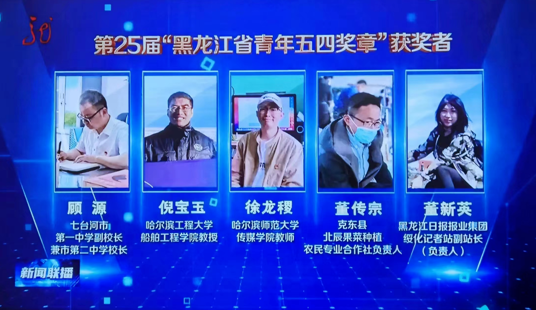 近日,中国电影家协会会员、中国电视艺术家协会会员,黑龙江省电影电视家协会会员、优秀青年创作人徐龙稷荣获第25届“黑龙江省青年五四奖章”。“黑龙江省青年五四奖章”是共青团黑龙江省委员会、黑龙江省青年联合会授予黑龙江优秀青年和青年集体的最高荣誉,本届共有20名青年、10个青年集体获“黑龙江省青年五四奖章”“黑龙江省青年五四奖章集体”殊荣。