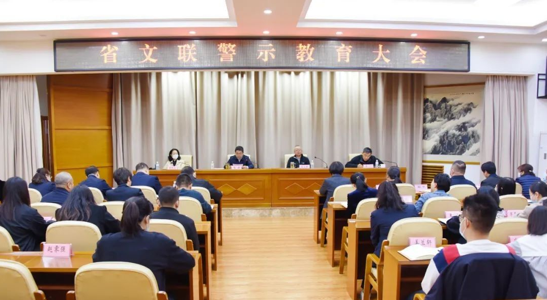 为驰而不息深化作风建设,营造风清气正良好政治生态环境,按照省纪委监委驻省委宣传部纪检监察组工作安排,5月11日上午,省文联召开警示教育大会,以被通报的辽宁系列腐败案为鉴,引导机关党员干部知敬畏、存戒惧、守底线,筑牢信仰之基、对党绝对忠诚,做“两个确立”“两个维护”的忠诚拥护者、忠实践行者,不断增强拒腐防变的坚定性自觉性。