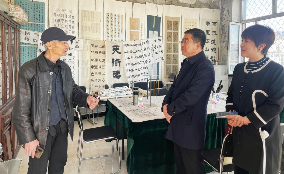 在哈尔滨市道外区团结镇,调研组实地考察了农民书法创作基地,与当地农民书法爱好者开展座谈交流,详细了解基地在推动农民书法品牌建设、推动乡风精神文明建设、助力乡村振兴方面的具体情况,征集组织农民书法爱好者开展培训、创作等方面存在的困难和问题。
