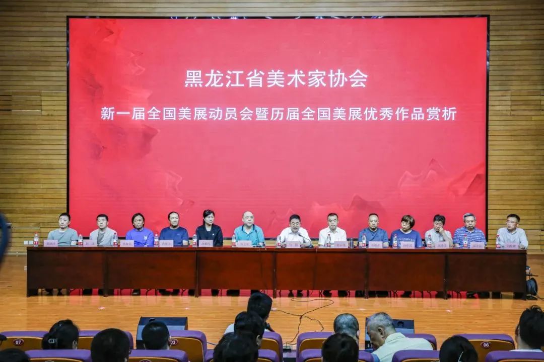 6月28日,黑龙江省文联、黑龙江省美术家协会在哈师大音乐厅组织开展“新一届国展动员会暨历届全国美展优秀作品赏析”活动,约700位美术工作者线上线下同步参与。