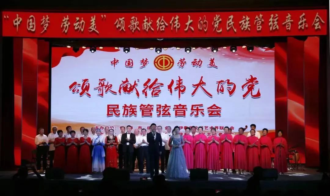 7月6日下午,由伊春市总工会、市文学艺术界联合会主办,市工人文化宫、市文艺志愿者协会、市民族管弦乐学会,伊美区文明办承办的“中国梦·劳动美——颂歌献给伟大的党”民族管弦音乐会在伊春市工人文化宫举办,近60名管弦乐、声乐演员及剧务人员等文艺志愿者献上了一场精彩的演出,让观众在感受中华优秀传统文化魅力的同时,回顾中国共产党的光辉历程,共同展望党和人民事业发展的光明前景。