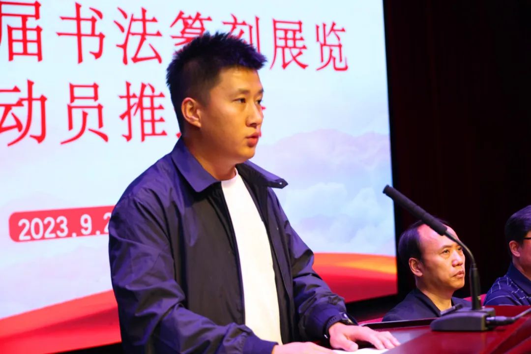 中国书协理事、西泠印社理事、省书协主席张戈在会上作动员讲话,对各团体会员单位及创作骨干提出三点要求。一要把握国展主题,明确创作方向。要进一步提高政治站位,以习近平新时代中国特色社会主义思想为指引,把坚定的信念、真挚的情怀和勇毅的历史担当体现到创作实践之中,做到艺文兼备,注重作品思想性和艺术性的完美统一。二要坚持守正创新,拿出精品力作。省书协要根据实际,本着导师——内聘与外请相结合、辅导——集中与分教相结合、看稿——线上与线下相结合、分组——导师与地域相结合、师承——以老带新相结合的方式开展好创作培训。各市地和行业书协要迅速行动起来,积极组织骨干作者参加培训。三要认真组织协调,严格履行初评程序。按照评审要求,本着公平、公正、规范、科学的原则,对非中国书协会员投稿作品进行初评预选,并认真做好初评入选作品和中国书协会员投稿作品的登记及报送工作。最后,张戈就多年来参加全国各类书法展览任评委和监委工作经验,与大家分享和交流五点体会:一是体现自我,避免雷同;二是关键在写,尽量少"作″;三是内容在先,作品在后;四是关注细节,力求完美;五是放胆创作,踊跃投稿。