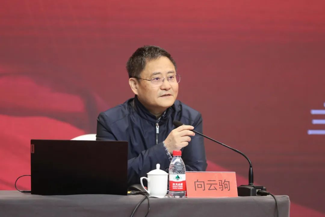 讲座中,向云驹围绕“第二个结合”与文艺的文明维度这一主题,从“两个结合”的提出与深化升华、“第二个结合”的思想来源、“第二个结合”的历史阶段和发展过程、新时代“第二个结合”的理论内涵和思想张力、“第二个结合”的文明维度、建设中华民族现代文明、文明与艺术的关系、中外中西文化交流深度进入和互相展开、两大历史性的任务等内容,对“第二个结合”的历史定位、理论内涵和现实价值,以及文艺文联工作面临的新任务新使命进行了深刻阐述与系统解读,全方位、多角度阐释了“第二个结合”的独特创造、价值理念、鲜明特色、实践路径。