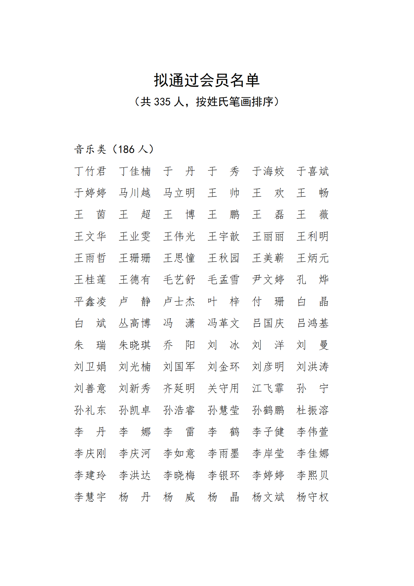 2023年度黑龙江省音乐家协会、摄影家协会、曲艺家协会、民间文艺家协会入会申报审批工作已经结束。根据相关协会章程及个人会员入会细则有关规定,经相关会议研究、按流程严格审核,共确定335名申报者为2023年度拟入会人员,现进行公示,名单如下。