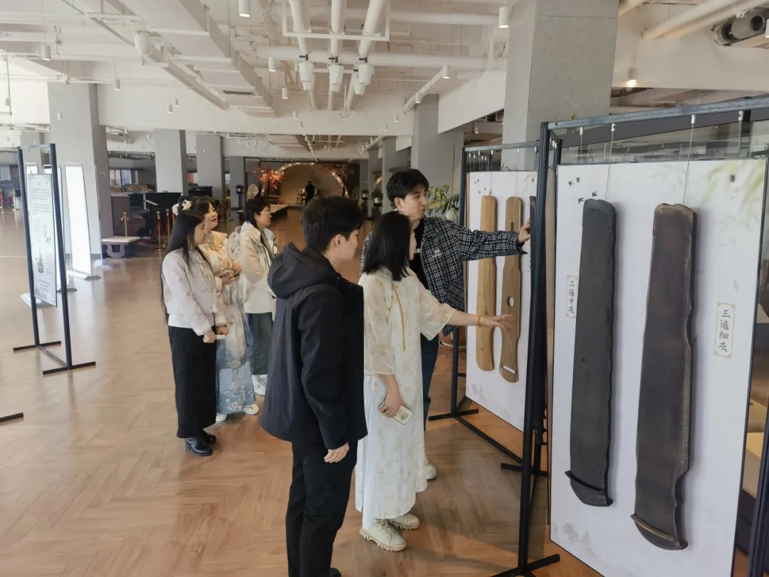 参观人员首先观看了正在举办的“善斫——中国古琴传统制作艺术展”。一块块展板、一张张古琴和那些发黄变脆的古代琴谱,让大家了解到古琴悠久的历史、精湛的制作工艺。