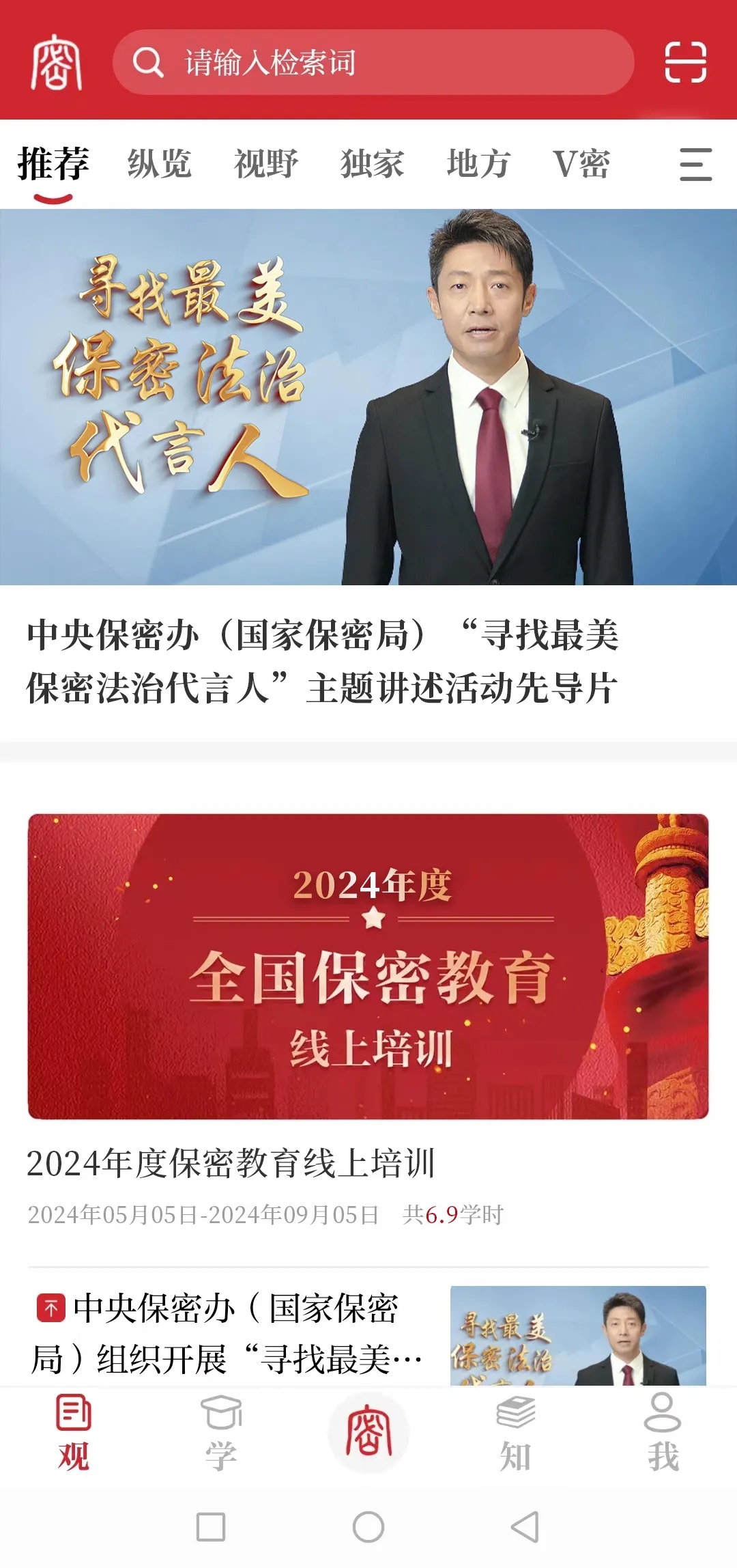 通过“保密观”APP进入培训系统,有两种方式: