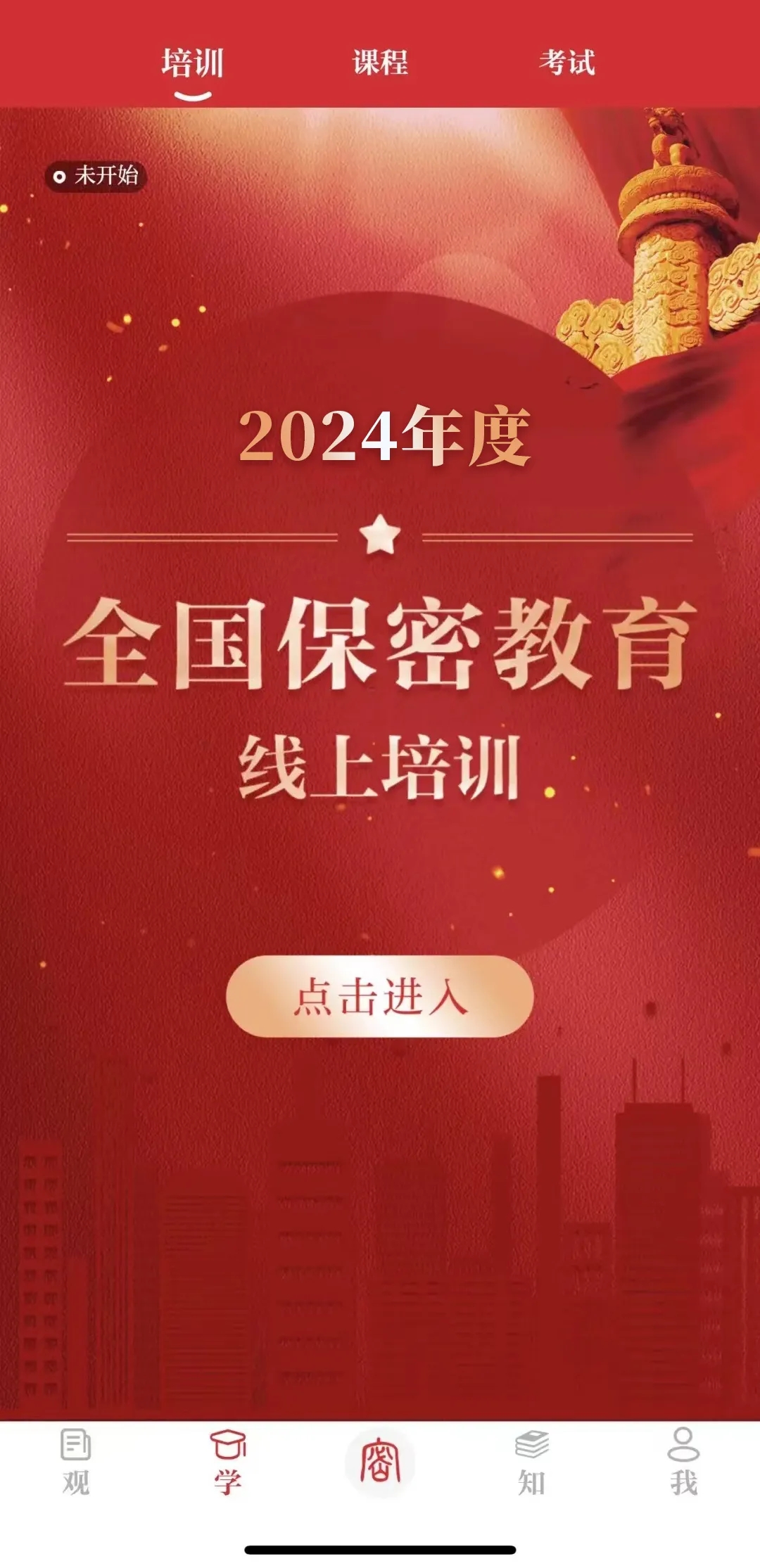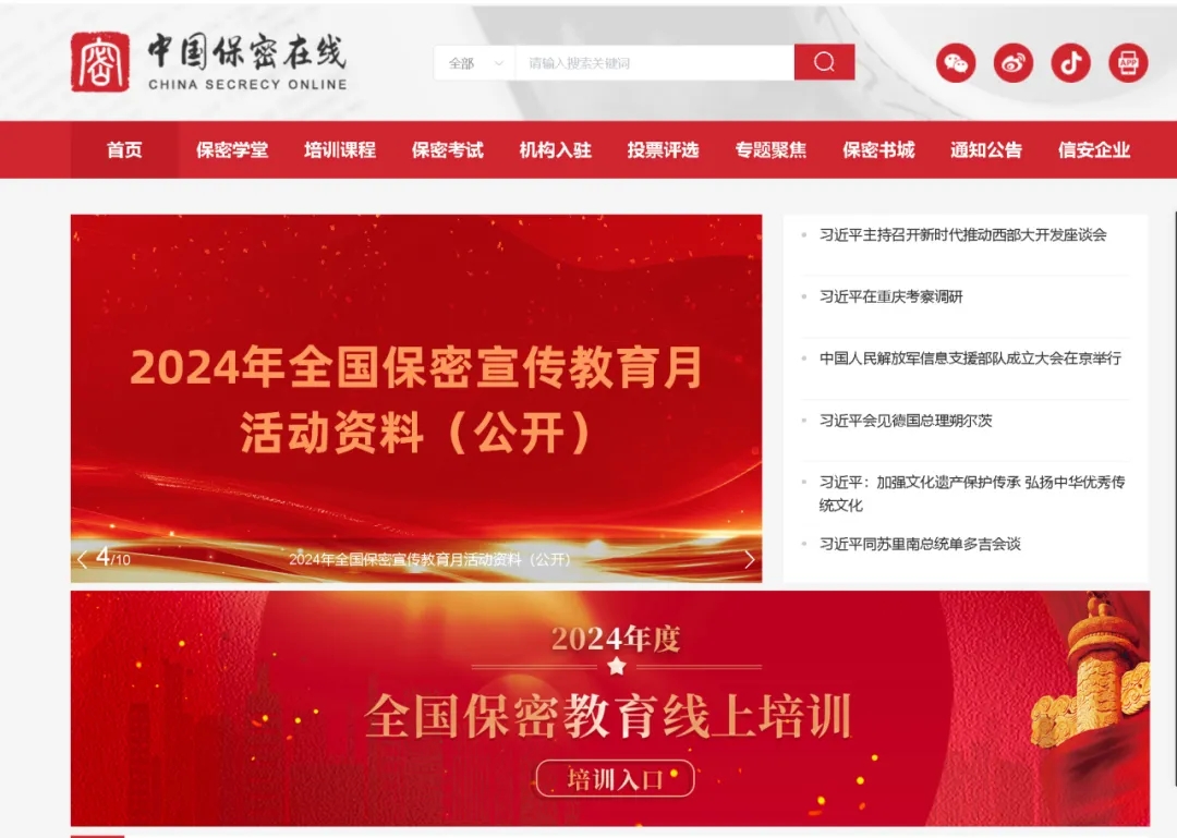 通过中国保密在线网站进入培训系统:点击首页标题图。