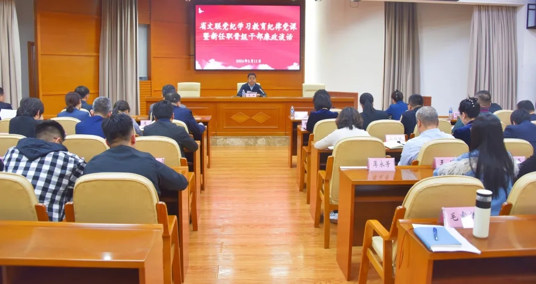 5月11日,省文联党组书记马新为全体党员干部讲党纪学习教育纪律专题党课,与新任职晋级干部开展集体廉政谈话,树牢政治机关意识,校正思想行动方向,持续推动省文联党纪学习教育走深走实。