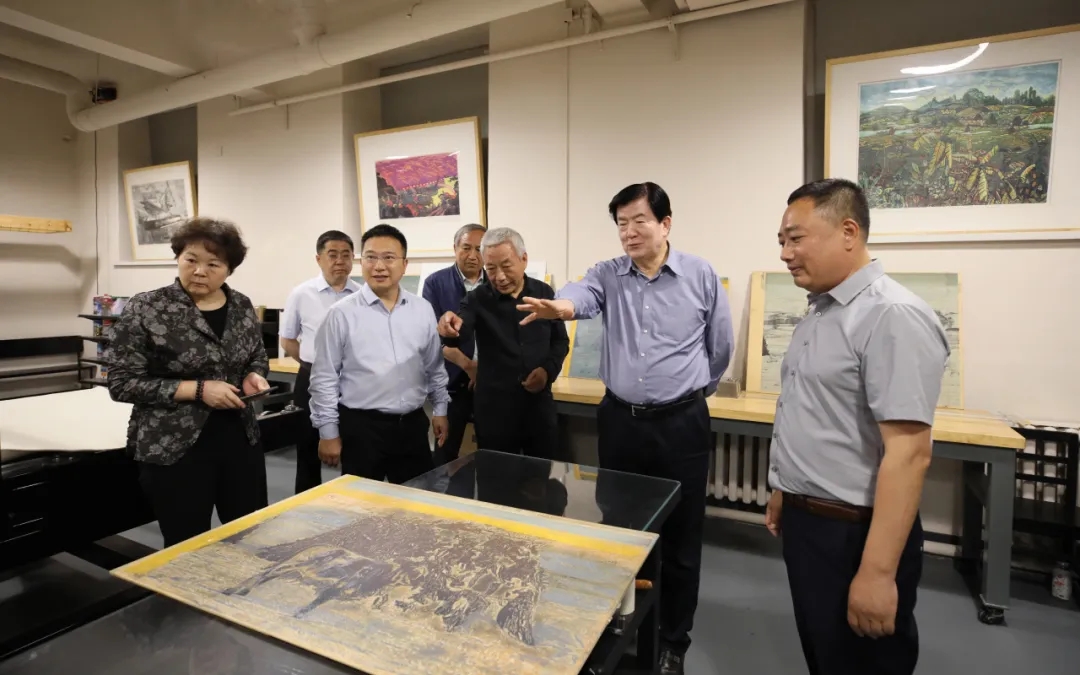 李屹在黑龙江(国际)版画博物馆版画创作体验区与黑龙江版画艺术家交谈
