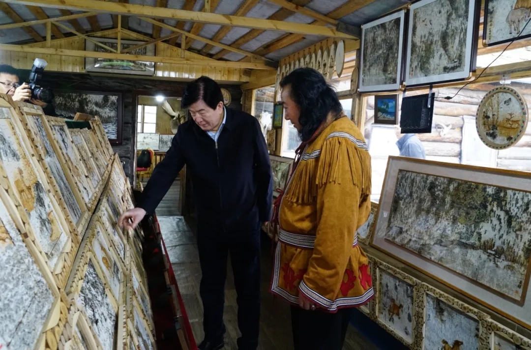 调研组深入到中国最北、纬度最高的县(市、区)级文联——漠河市文联,了解“最北文联工作者”的工作生活情况。赴北极村红色驿站、鄂伦春民族博物馆调研,走访了鄂伦春民歌(赞达仁)国家级非物质文化遗产代表性传承人关金芳、桦树皮烫烙工艺品非遗传承人刘书洋。李屹表示,中华优秀传统文化是我们最深厚的文化软实力,也是中国特色社会主义植根的文化沃土,民族民间文艺的挖掘传承保护是深入贯彻“两个结合”特别是第二个结合的重要举措,我们文艺文联工作者重任在肩,大有可为。