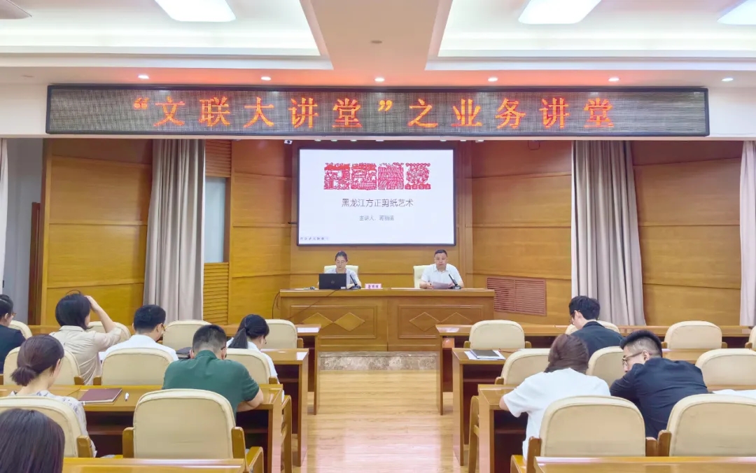 为持续推动文联干部进一步开拓视野格局、更新知识结构、提升能力本领,6月20日,“文联大讲堂”之业务讲堂由省民间文艺家协会驻会副主席、秘书长、一级调研员蒋丽丽开展方正剪纸艺术专题讲座。省文联全体干部职工参加。