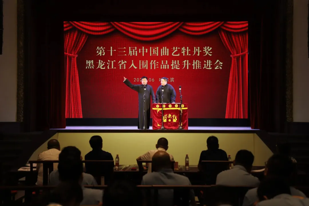 6月28日15时,为进一步提升第十三届中国曲艺牡丹奖我省入围作品的艺术质量和表现力,省曲协在哈尔滨百乐会相声剧场举办牡丹奖入围作品提升推进会。省文联副主席、省曲协主席、省演艺集团党委书记、董事长刘彤,中国曲协会员、国家一级编剧费守疆,中国曲协会员、中国曲协二人转艺委会委员、国家一级作曲王建仁,省评协秘书长尹淑凤,省曲协副主席王刚等业界专家,对即将在牡丹奖舞台上亮相的作品进行了深入研讨和精心打磨。