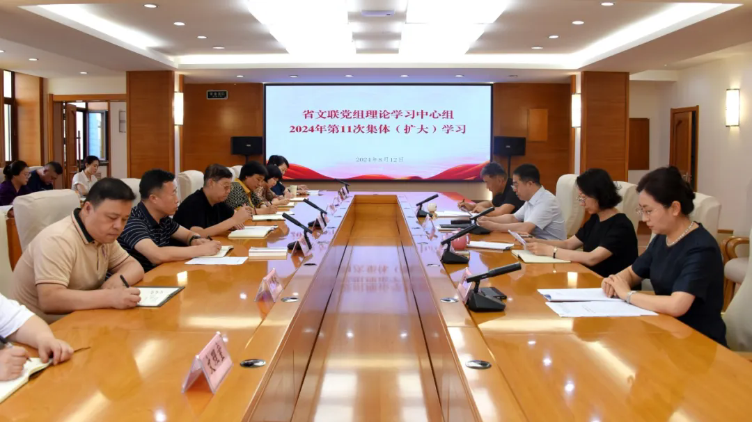 8月12日,省文联党组理论学习中心组召开年度第11次集体(扩大)学习会议,深入学习贯彻党的二十届三中全会精神,围绕落实省委十三届六次全会部署,推动文艺文联工作高质量发展开展交流研讨。会议集中观看了党的二十届三中全会相关视频资料,省文联党组书记马新主持会议,中心组成员和二级巡视员、各处室(协会)负责同志交流了学习体会。