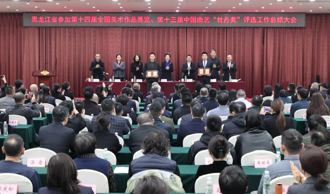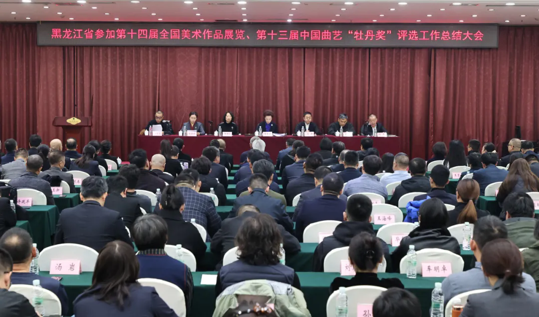 近日,在庆祝中华人民共和国成立七十五周年——第十四届全国美术作品展览暨第四届“中国美术奖”、第十三届中国曲艺“牡丹奖”等国家级展赛中,我省艺术家胡宝鑫荣获“中国美术奖”金奖,刘骥荣获中国曲艺“牡丹奖”文学奖,为我省争得了荣誉。为总结成功经验,展示创作成果,树立先进典型,发挥示范效应,进一步推动我省文艺精品创作,11月19日,省文联组织召开黑龙江省参加第十四届全国美术作品展览、第十三届中国曲艺“牡丹奖”评选工作总结大会。省委宣传部常务副部长谭宇宏出席并作总结讲话,省文联副主席、党组成员黄锦秋、王广、杨柏婷,省委宣传部文艺处处长袁清媛,省文联二级巡视员及各部门负责同志,省级各文艺家协会在哈主席团成员,“中国美术奖”、中国曲艺“牡丹奖”获奖、进京、入选作者及我省美术界、曲艺界代表等200余人参加会议。会议由省文联党组书记马新主持。