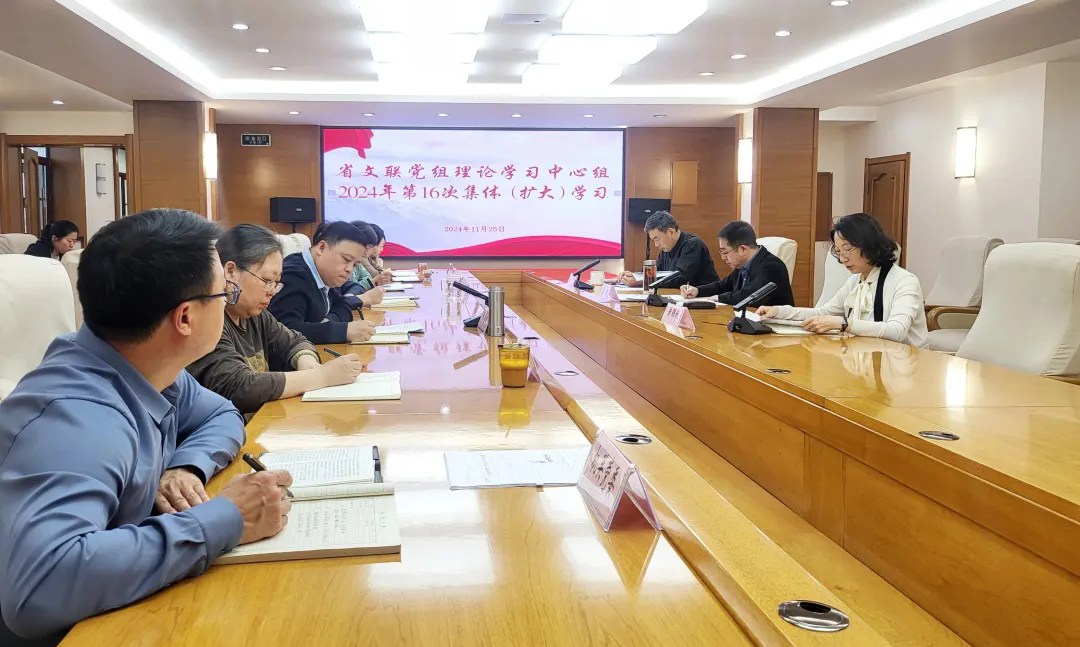 11月25日,省文联党组理论学习中心组召开第16次集体(扩大)学习会议,深入学习领会《党史学习教育工作条例》,结合学习贯彻《整治形式主义为基层减负若干规定》精神和我省《整治形式主义为基层减负若干措施》,推动党史学习教育常态化长效化,坚持不懈用习近平新时代中国特色社会主义思想凝心铸魂。会议由党组书记马新主持,中心组成员及部分部门负责同志聚焦继承党的优良传统,学好党史、用好党史,整治形式主义,加强作风建设,推动文艺文联高质量发展开展交流研讨。
