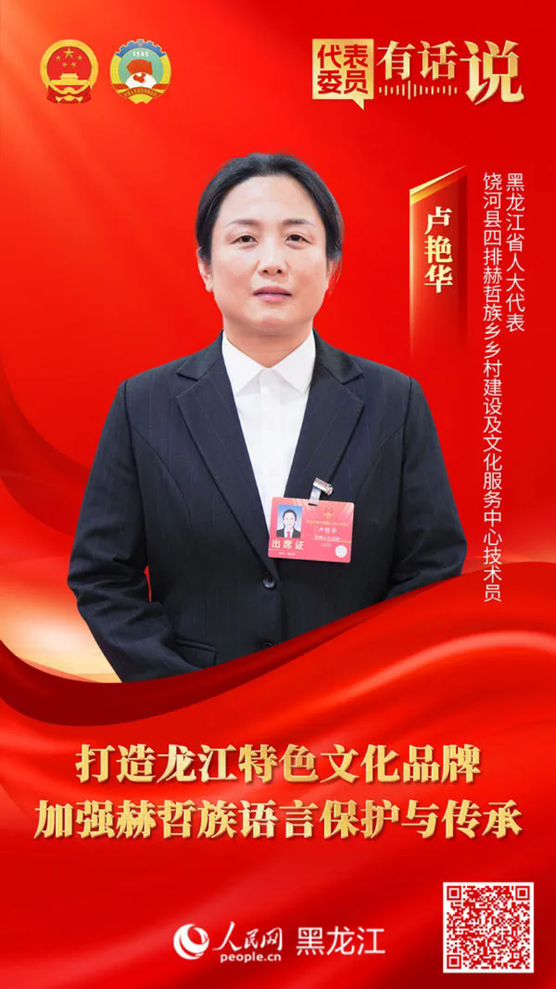 政府工作报告指路领航,鼓舞人心。省人大代表、省民协会员、省曲协会员卢艳华表示,报告中提到的发展特色旅游文化,让传承人有了更广阔的舞台和更明确的方向。卢艳华介绍,赫哲族是一个拥有独特语言而无文字的民族,其语言承载着深厚的民族文化与历史记忆。对此,卢艳华建议,应加强赫哲族语言的保护与传承,更好地保护赫哲族语言。一是深化语言记录与保存,建立专业团队,采用多媒体记录技术,实现数字化存储与传播;二是活化传承与教育普及,推动赫哲族语言进入当地学校课程,利用多种媒体渠道推广赫哲族语言学习资源和文化活动;三是加强文化产业发展与旅游融合,开发以赫哲族渔猎文化为主题的旅游线路和产品,打造具有龙江特色的文化品牌;四是推动政策支持与社会参与,鼓励社会各界参与赫哲族语言的保护工作。
