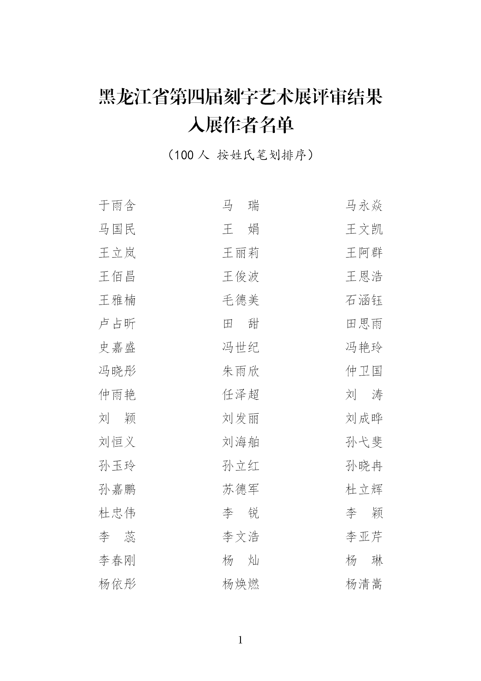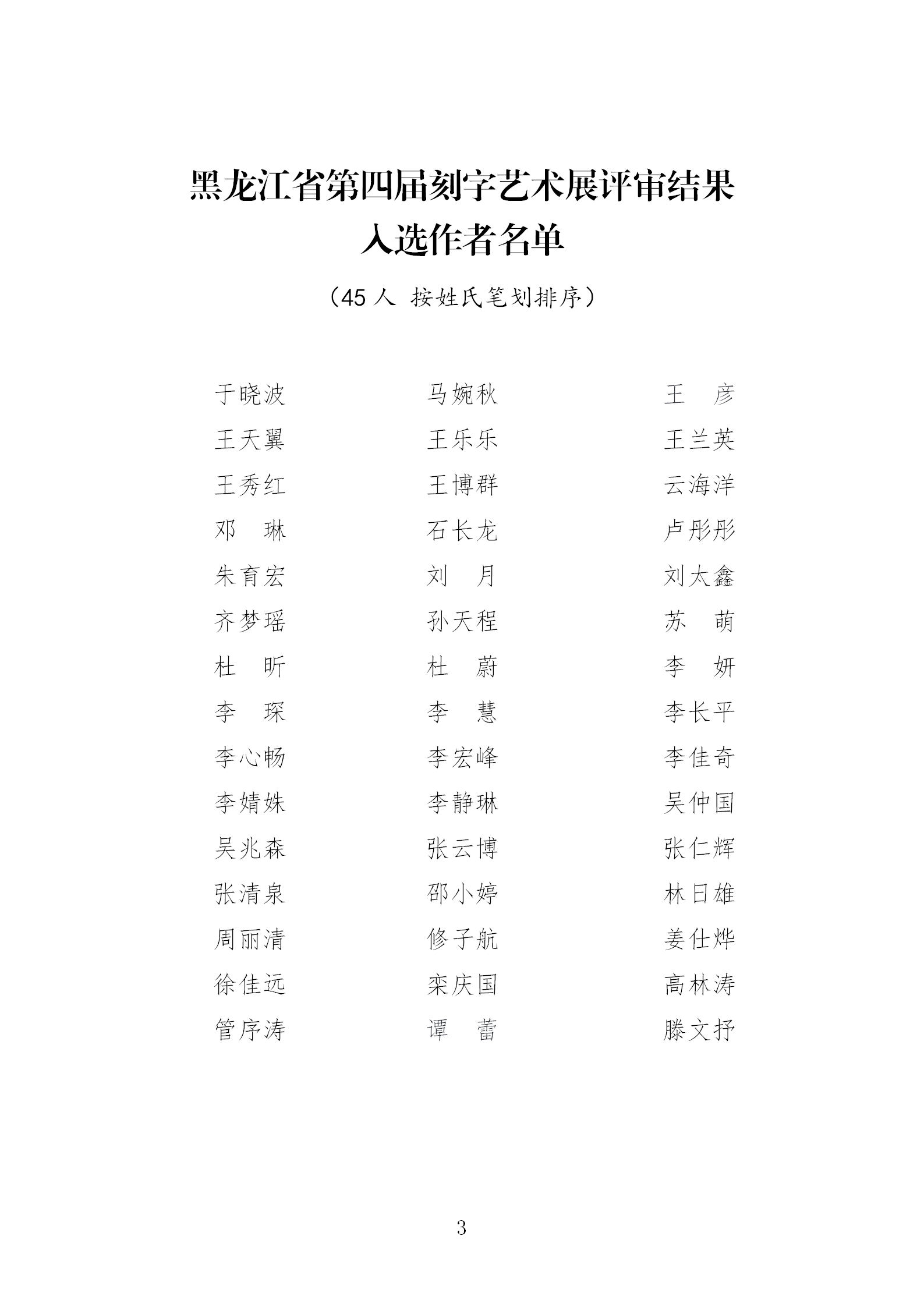 现将黑龙江省第四届刻字艺术展评审结果进行公示。如有异议,请在2025年6月26日-7月3日(5个工作日)公示期间,向黑龙江省书法家协会反映。