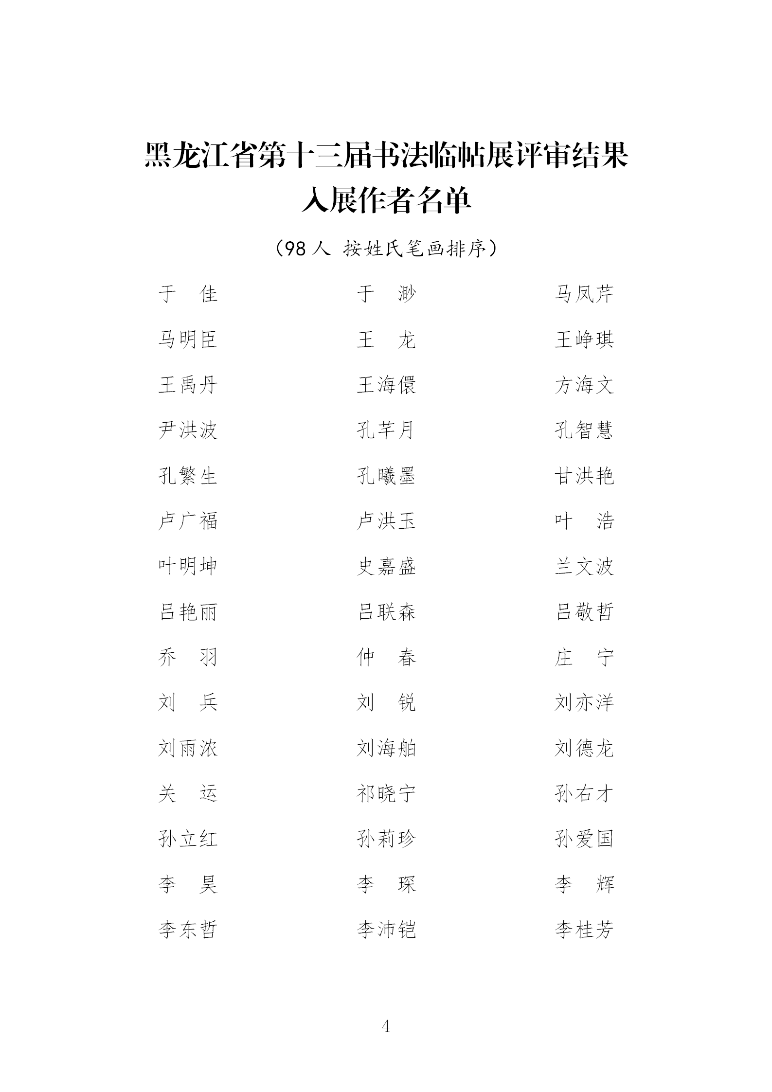 按照《黑龙江省第十三届书法临帖展》征稿启事和评审规定,经评审委员会评审、视频抽查考核,获奖、入展、入选作者名单现予公布。
