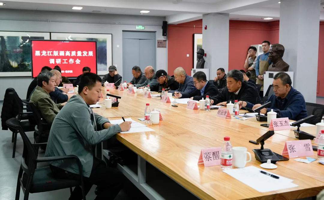 省文联副主席、省美协主席赵云龙系统汇报了黑龙江版画的起源沿革、艺术特色、发展现状、存在问题及未来规划。张玉杰、于承佑、刘德才等十余位版画工作者和艺术家代表,结合自身创作实践,围绕黑龙江版画的发展基础、创作生态、现实意义与未来方向交流了心得体会,现场研讨气氛热烈。