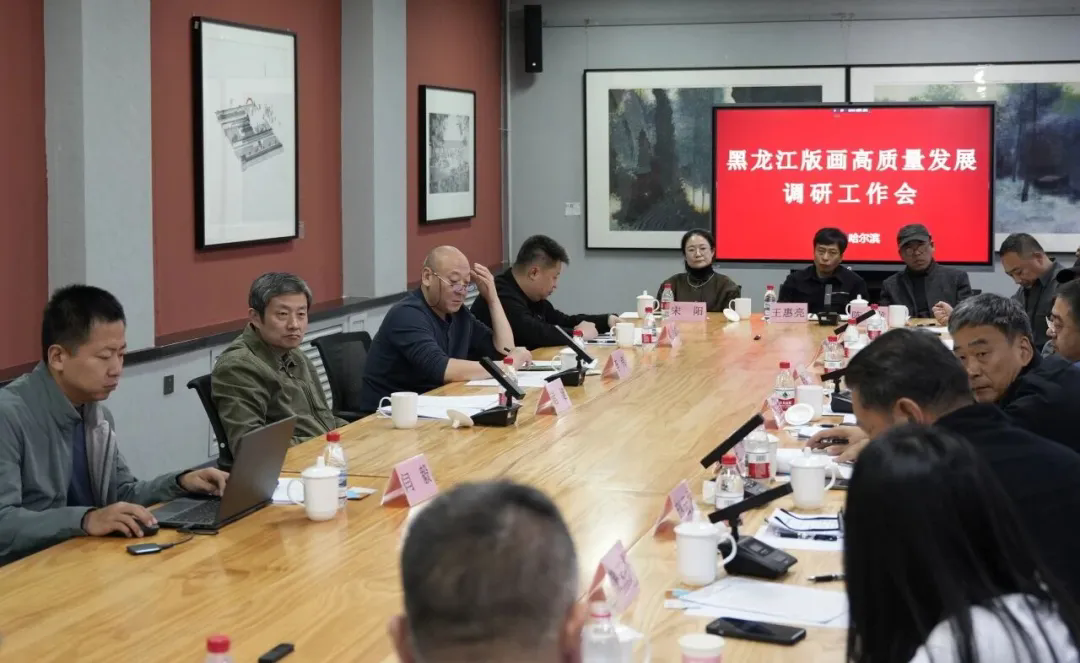 座谈会上,省美协副主席、省书画院党委书记、院长李振宇介绍了省书画院、黑龙江(国际)版画博物馆的基本情况。省文联党组书记马新汇报了近年来省文联在推动全省美术事业发展方面的工作举措,重点从搭建创作平台、推动精品创作、强化组织建设、深化艺术交流等方面总结了工作成效,分析了当前在人才培训、精品创作、活动组织和服务扶持等方面存在的不足,并围绕“守正创新”“人才培育”“平台建设”“传播交流”等方面提出下一步推动龙江版画高质量发展的具体部署,强调坚守“扎根黑土、关注时代”的创作初心,创作更多反映时代变迁、弘扬北大荒精神的优秀版画作品。