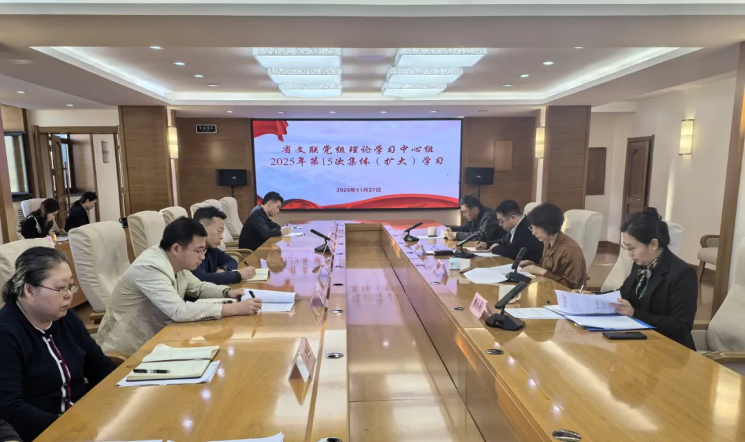 11月27日,省文联党组理论学习中心组召开第15次集体(扩大)学习会议,深入学习领会习近平总书记关于党的建设的重要思想,学习领会习近平总书记关于坚持好发展好完善好中国新型政党制度的重要论述,聚焦坚持和加强党对文艺工作的领导,推动文艺文联工作高质量发展开展研讨交流。党组书记马新主持会议并作总结讲话。