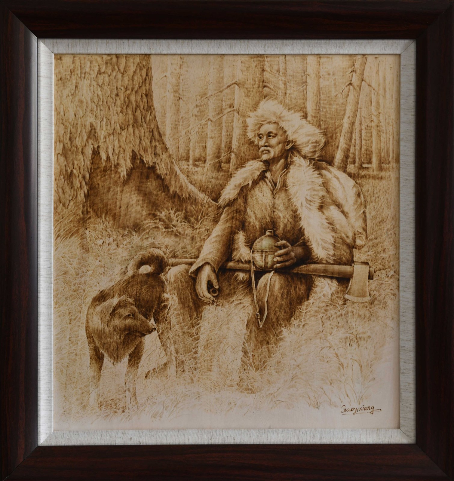 高义祥 烙画《守护》