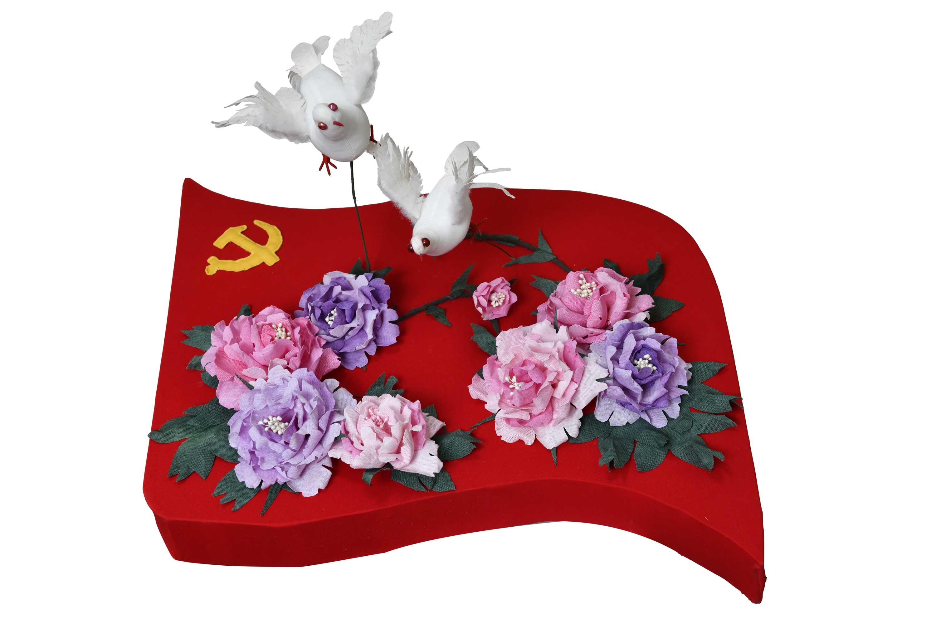 姜春 民俗布艺《红花向阳心向党》