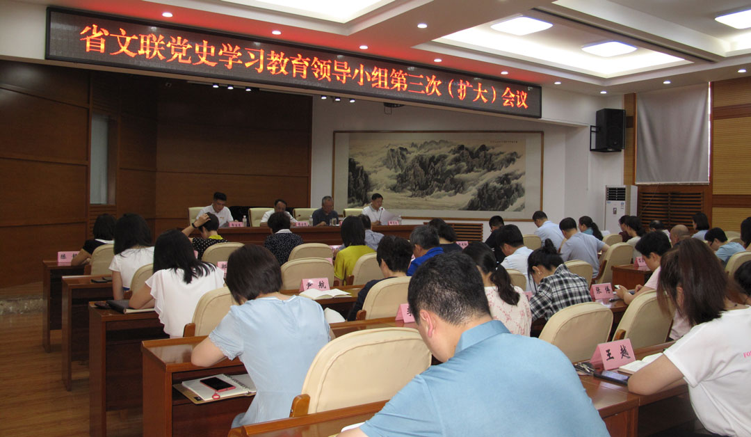 为扎实推动省文联党史学习教育持续深入推进,7月16日,省文联召开党史学习教育领导小组第三次(扩大)会议,会议的主要任务是对前一阶段党史学习教育情况进行总结,对下步工作明确任务、提出要求。会议由省文联党组书记张云凯主持,省委第十指导组成员郭宝东和省文联领导班子成员以及全体在职干部职工一起参加会议。