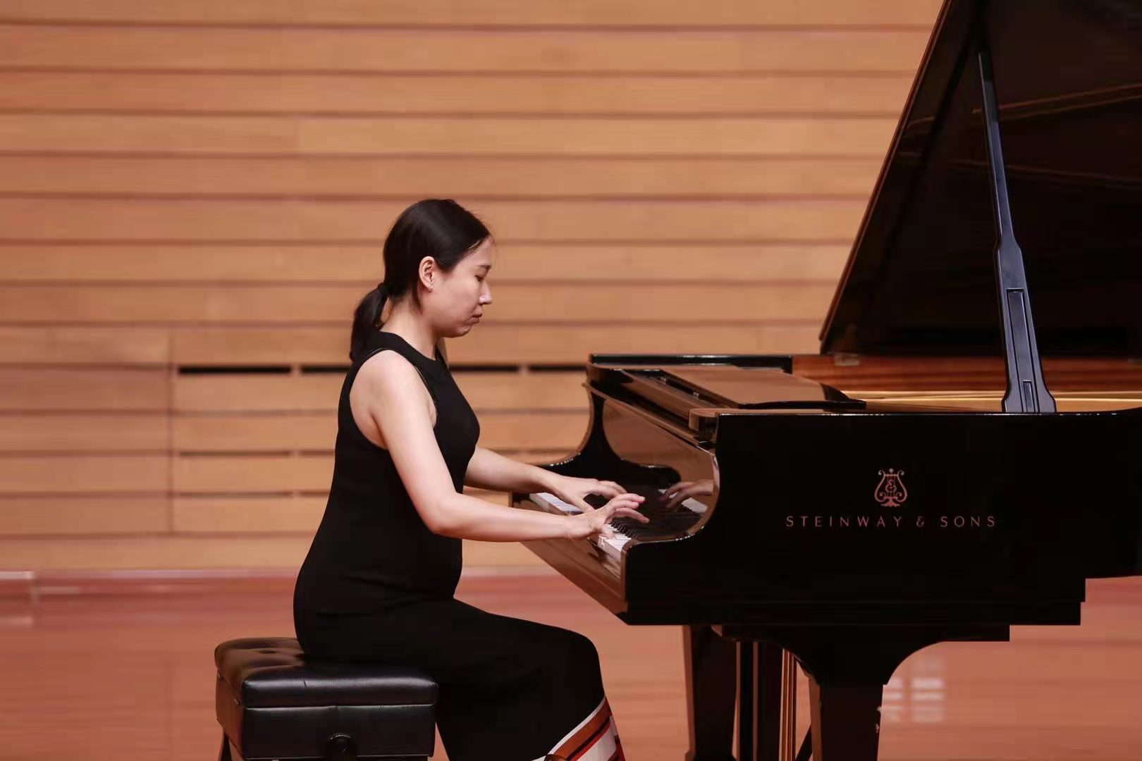 系列音乐会上,省音协钢琴学会会长梁梅、副会长吴琼演奏了四手联弹《唱支山歌给党听》,来自哈尔滨、齐齐哈尔、牡丹江、佳木斯、大庆的专业院校师生演奏了《太阳最红,毛主席最亲》《叙事曲“游击队歌”》《黄河颂》《保卫黄河》《洪湖水浪打浪》《丝路》《浏阳河》《思恋》《兰花花》《红旗颂》《党啊,亲爱的妈妈》《我和我的祖国》等经典钢琴作品,赢得观众阵阵掌声。怀孕6个月的哈尔滨师范大学音乐学院教师陈思斯成为了舞台上的亮点,她演奏的《松花江上》激情饱满,沉着有力的琴音奏响了往昔峥嵘岁月的记忆,精彩的演奏既是她精湛琴技的展示,更是一次特别的红色旋律“胎教”。