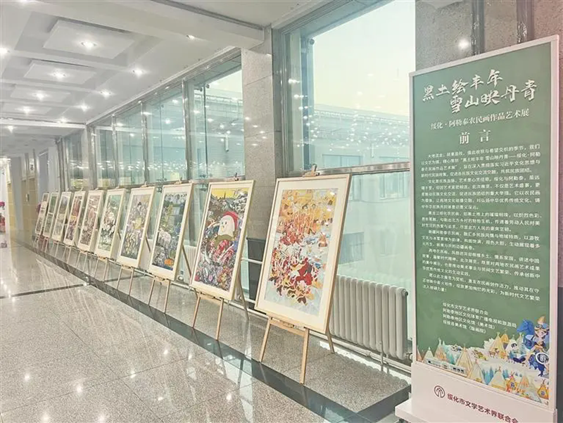 黑龙江省文联统筹协调、绥化市文联策划,在线下展出的同时,一场“黑土绘丰年 雪山映丹青——绥化阿勒泰农民画线上展”实现了跨地域联动,让寒地黑土遇见了“我的阿勒泰”。“这次农民画双年展,不仅是我省农民画的一次集中亮相,更是一场跨越地域的文化对话。本次展览特别邀请了阿勒泰地区农民画群体的20件作品参展。”阚生波说,这是一次跨越3000多公里的艺术交流,让寒地黑土风情与草原风光完成一次独特对话。