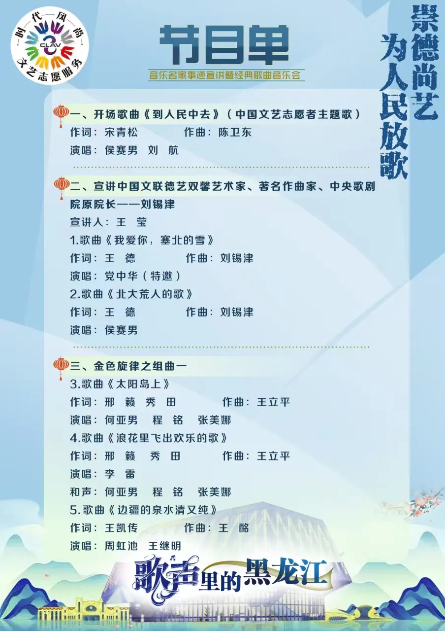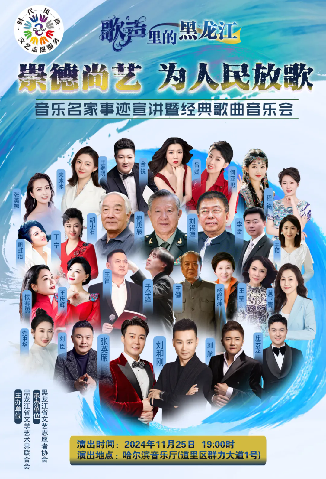在习近平总书记主持召开文艺工作座谈会并发表重要讲话10周年之际,为深入贯彻落实党的文艺方针政策,大力弘扬艺术家德艺双馨的高尚品质,通过生动感人的事迹宣讲和悠扬动听的经典旋律,充分展现黑龙江文艺界的深厚文化底蕴与辉煌艺术成就,“崇德尚艺·为人民放歌”音乐名家事迹宣讲暨经典歌曲音乐会于11月25日璀璨秋夜华丽绽放。音乐会由省文联主办、省文艺志愿者协会承办,线上同步直播。