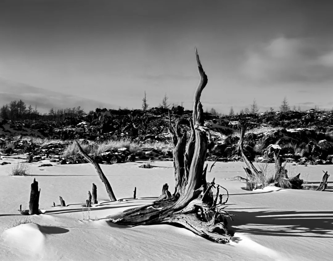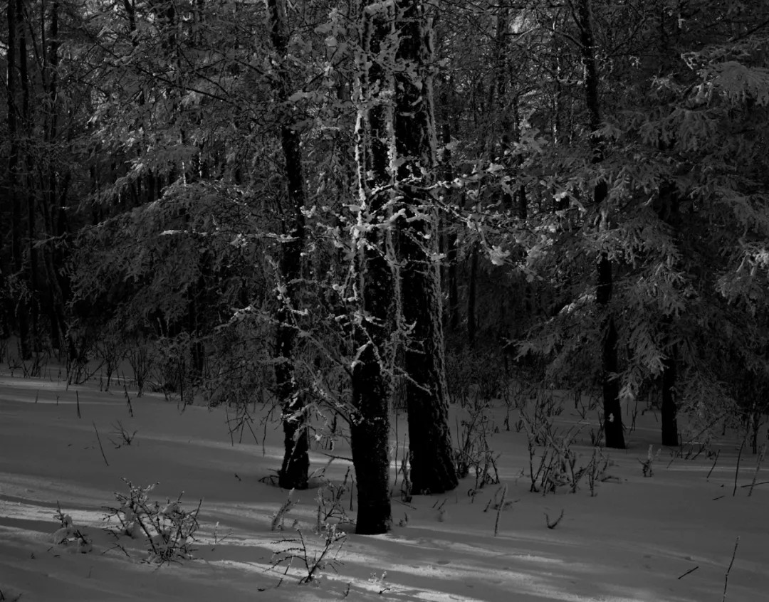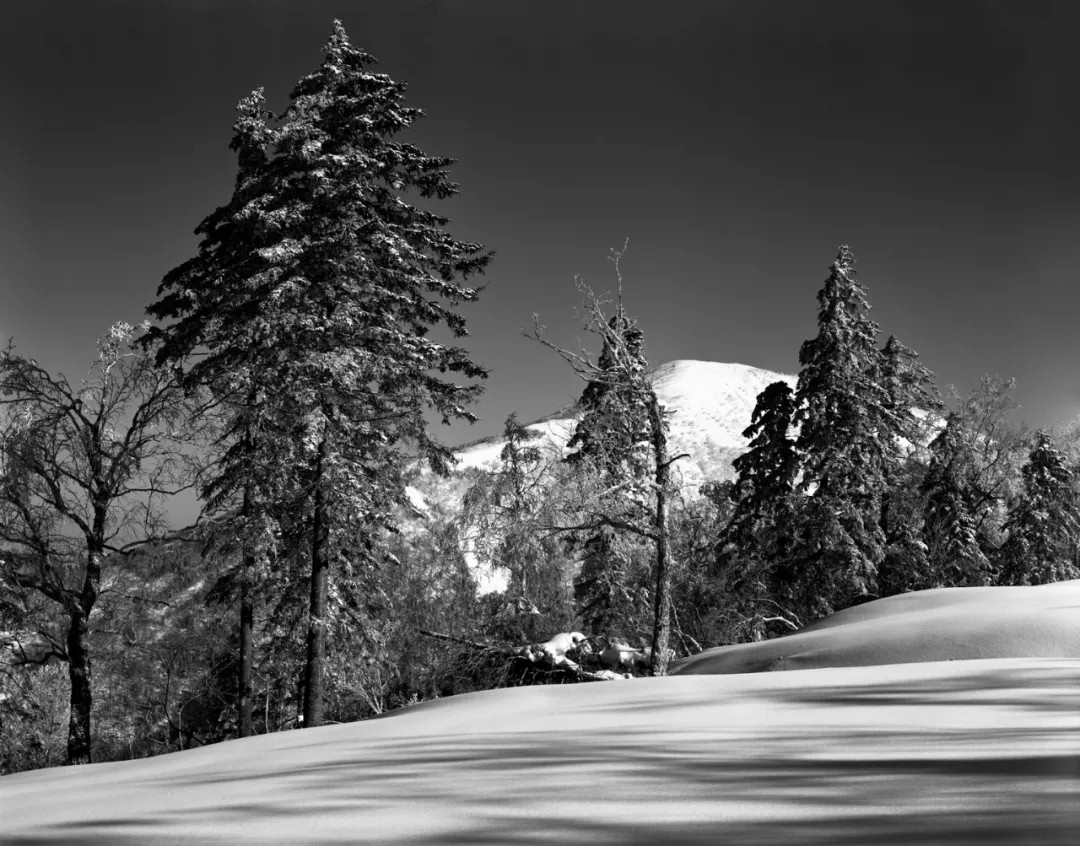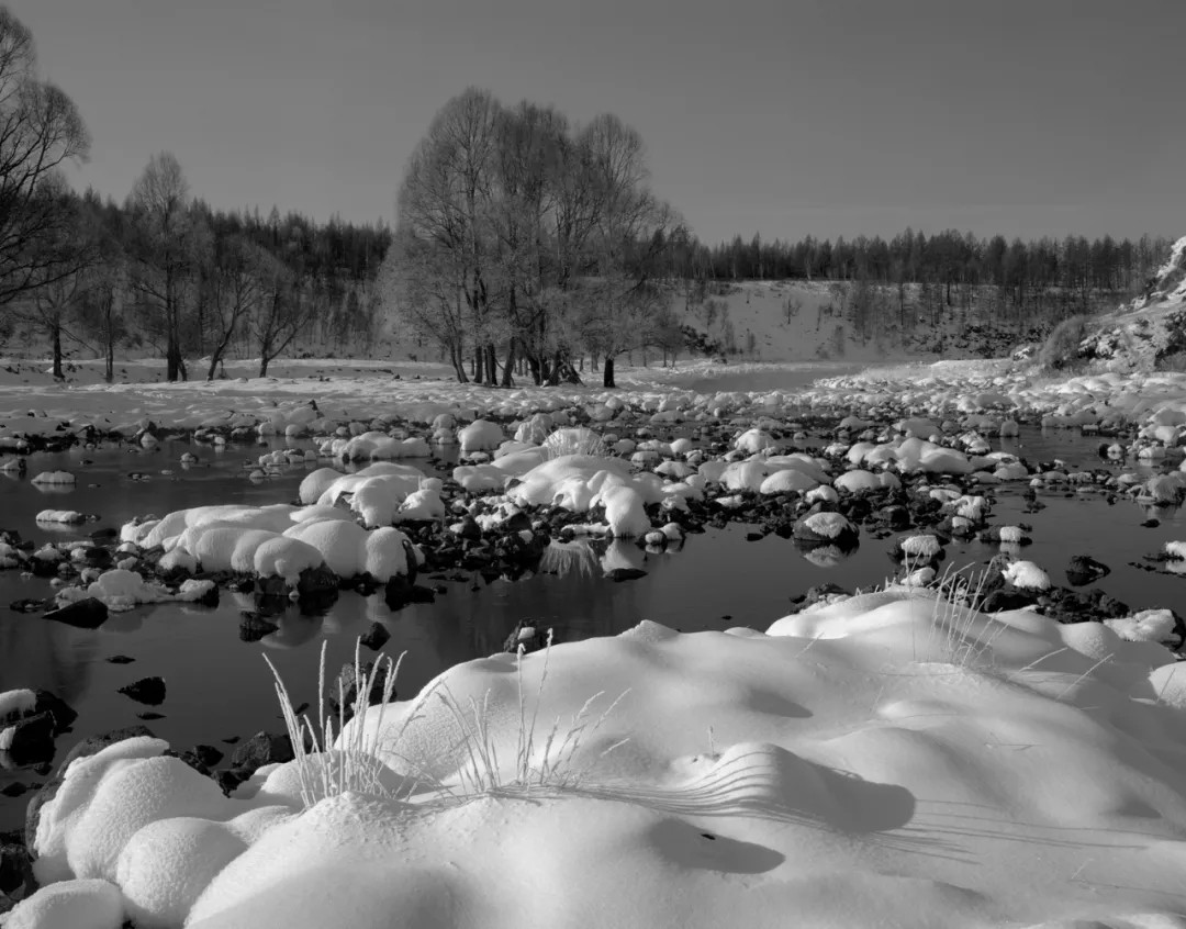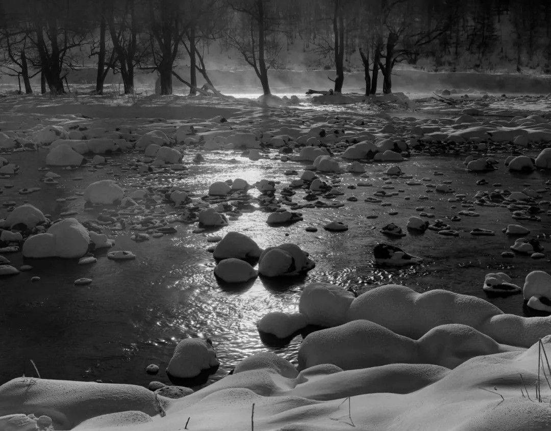 作者偏爱传统黑白胶片摄影,多年坚持使用大画幅技术相机创作,并认为在冰雪题材的表现上,黑白胶片在影调、质感等方面仍有着独特的优势。